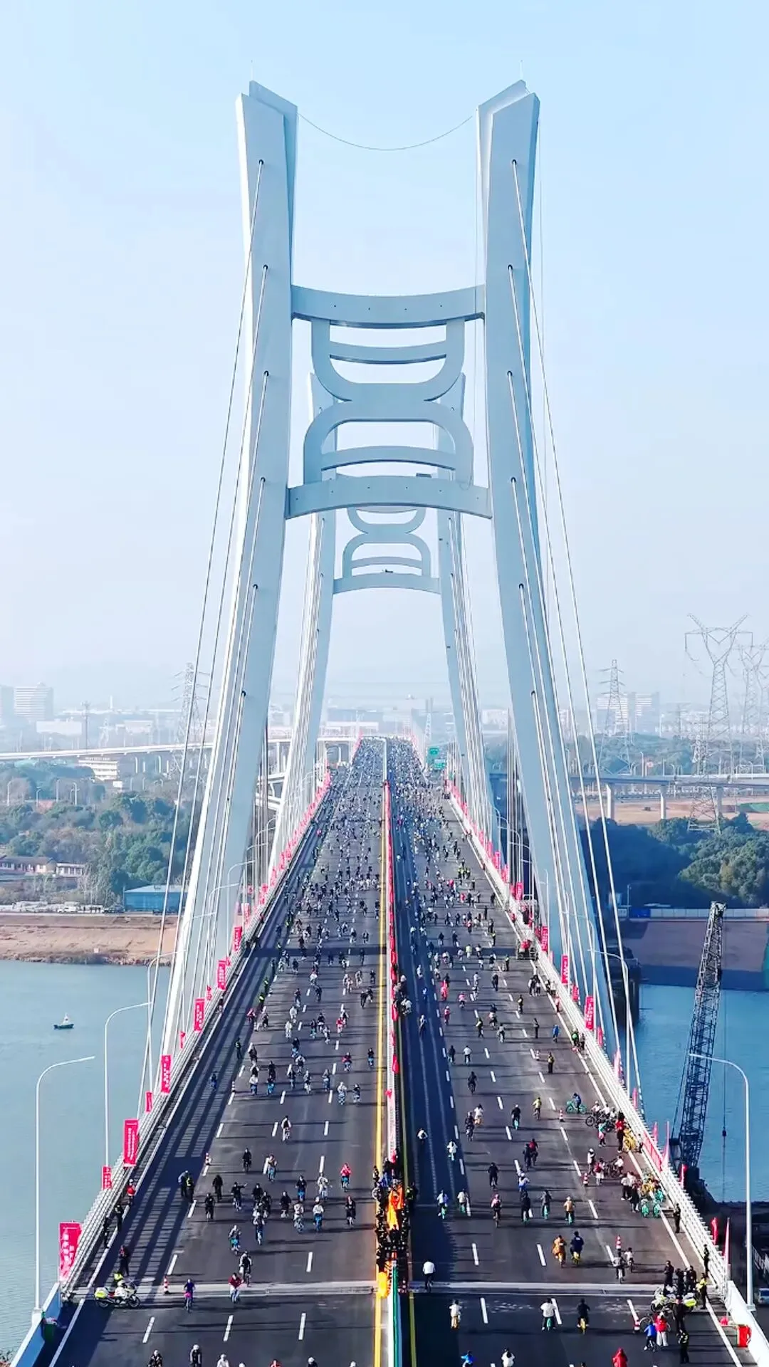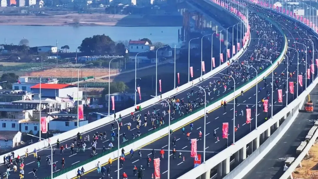 12月28日的南昌隆兴大桥彻底沸腾了!上午4.3万余名跑者沿12公里路线双向出发,用脚步丈量这座“超级工程”;下午2.3万余名骑行爱好者齐聚桥面,以绿色低碳的方式提前打卡新桥。这场“爱我英雄城”迎新健身系列活动,用“奔跑+骑行”的活力姿态,让即将启用的跨江大桥提前“出圈”。