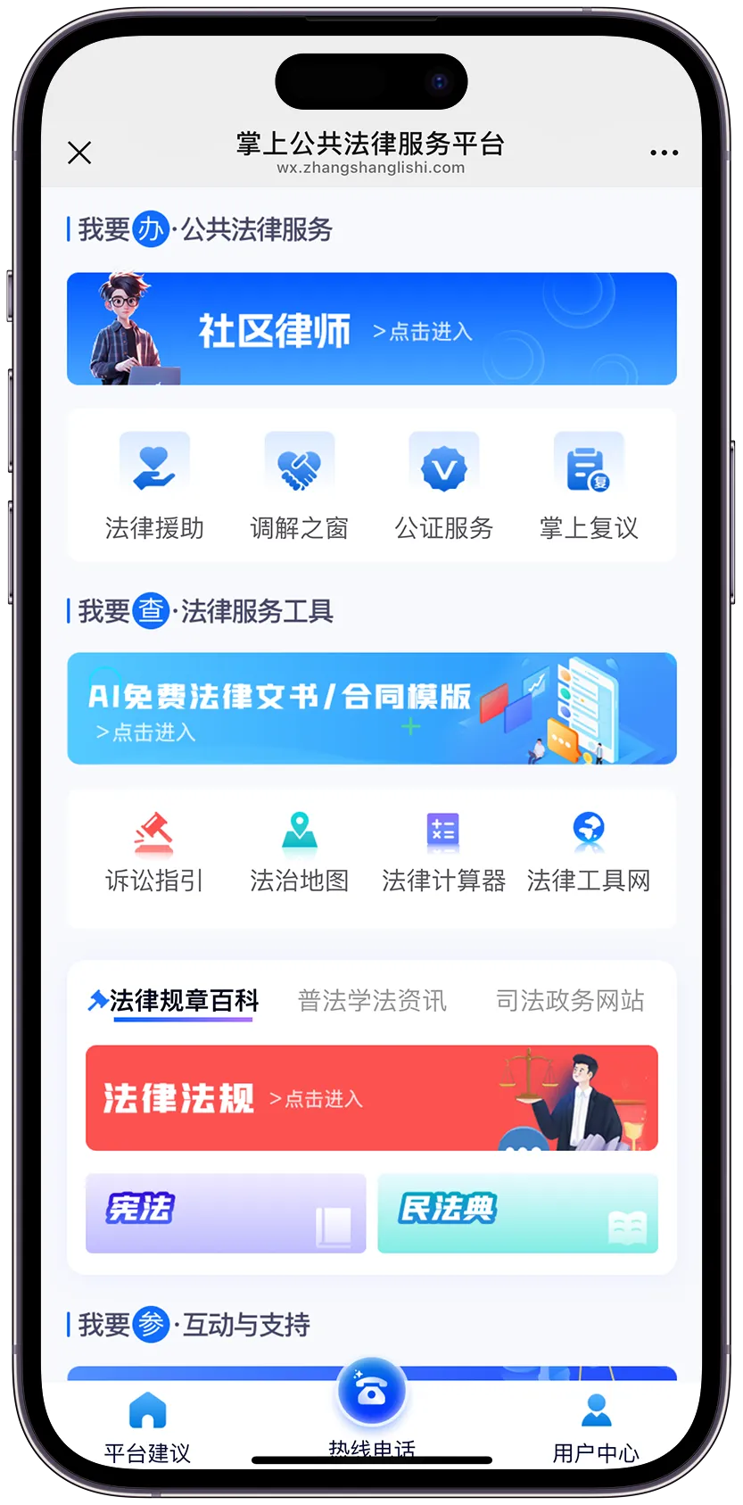 集成法律工具百宝箱,上千份法律文书模板免费下载,也可根据个人需求自动生成专属法律文书/合同模版,还有诉讼指引、法治地图、法律计算器一键调用,算费用、拟协议、查流程、找机构——以往跑断腿的事,现在秒级响应。