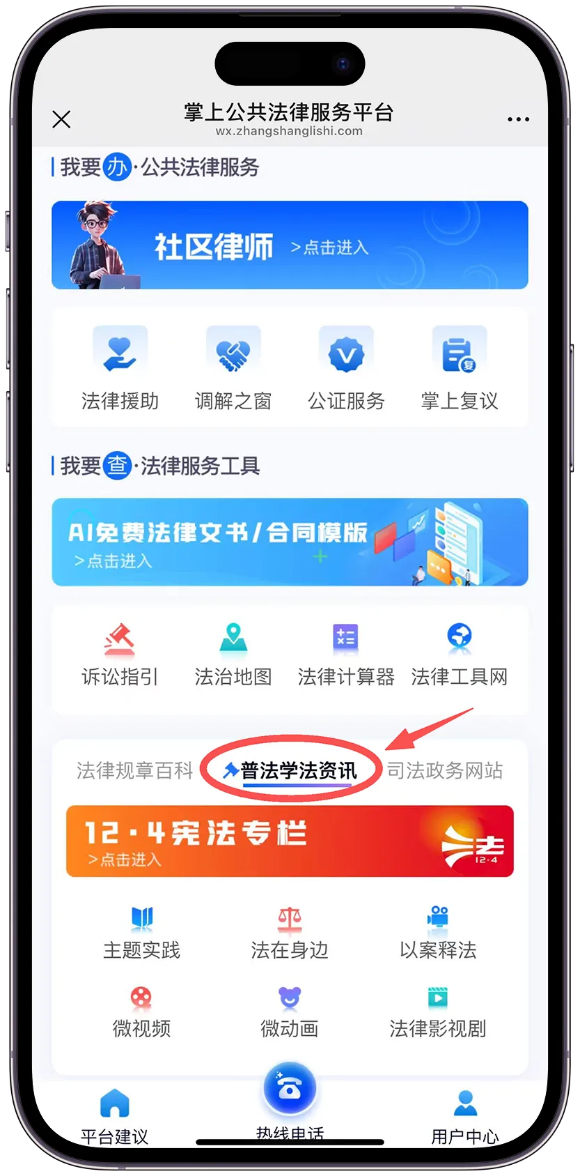 “12・4 宪法专栏”,支持音频学法;还可通过“主题实践”、“法在身边”、“以案释法”等深化法律认知,借助微动画、微视频、法律影视剧等,沉浸式学习法律知识。