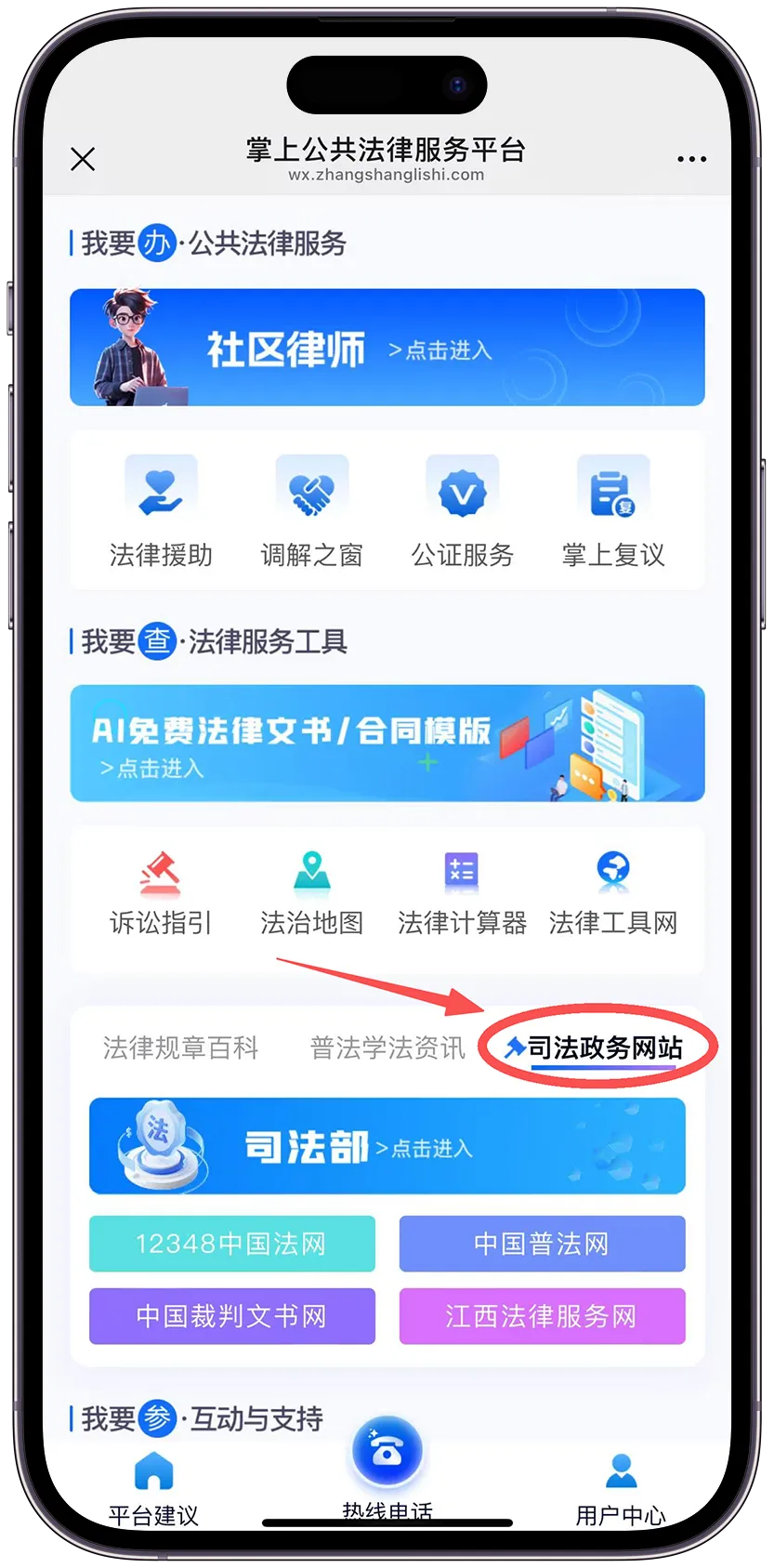 一键跳转12348 中国法网、中国裁判文书网、江西法律服务网等权威平台,方便群众获取更多专业法律资源。