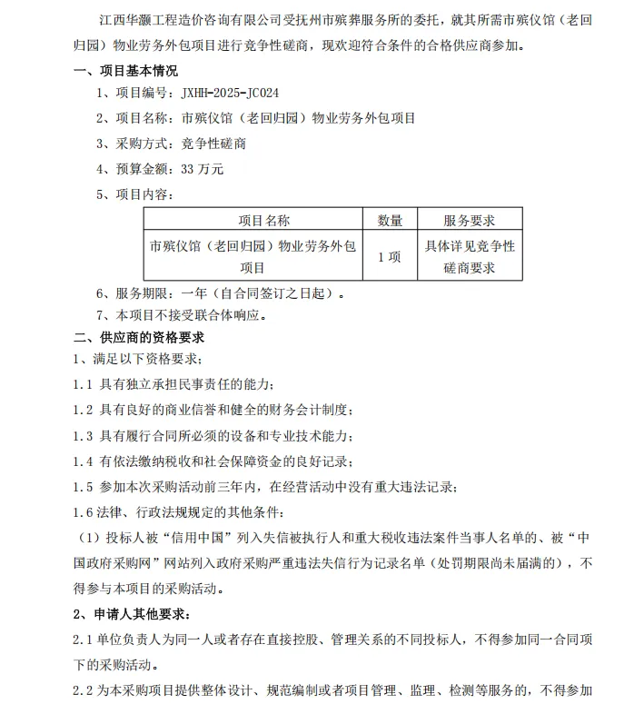 抚州市殡仪馆(老回归园)物业劳务外包项目项目的公告