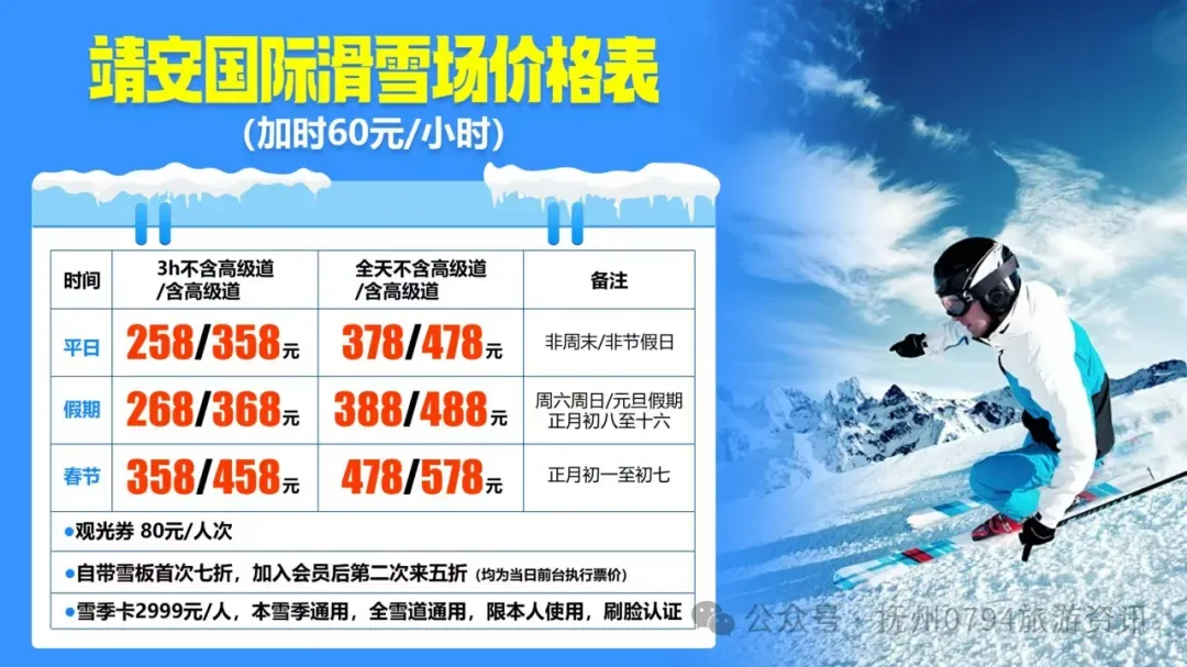 【抚州距离最近,无需盘山倒车,雪场最大,设施最新最全,八点半发车】元旦1月1日/2日/3日江西靖安国际滑雪场特价一日游298元!