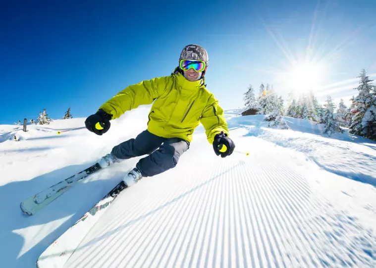 如果能够保持膝盖弯曲的状态,则可以将小腿推入滑雪鞋的前部,从而更好的控制滑雪板,它还能够使你的上半身位于双腿上方,有助于保持平衡。