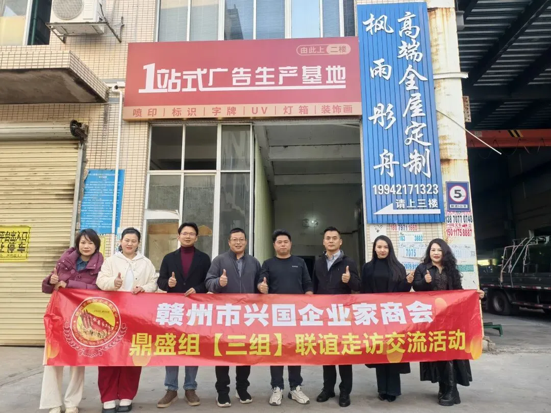 12月26日下午,赣州市兴国企业家商会三组(鼎盛组)开展小组走访联谊活动。三组副组长(商会副会长)肖家辉、组员(商会会员)谢小东、刘乐慧、方诚、蓝才坚、钟小游、刘贤金、联络员吕佩霖、陈龙生,特邀四组联络员姚华、五组联络员钟文娟、八组联络员朱莉莉以及秘书处人员参加本次活动。