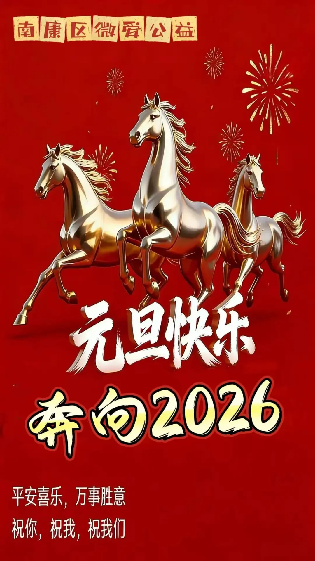骏马踏春,志愿同行。值此2026年元旦来临之际,赣州市微爱公益科技志愿者协会谨向各级志愿服务组织、广大志愿者朋友们,向长期以来关心关怀我们的各级领导,向鼎力支持志愿服务事业发展的社会各界朋友们,致以最诚挚的新年祝福与最崇高的敬意!