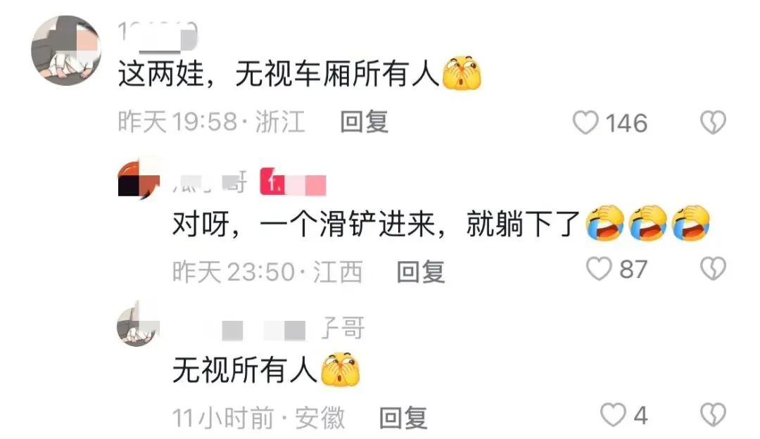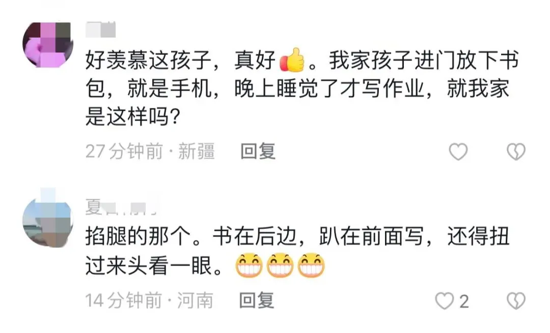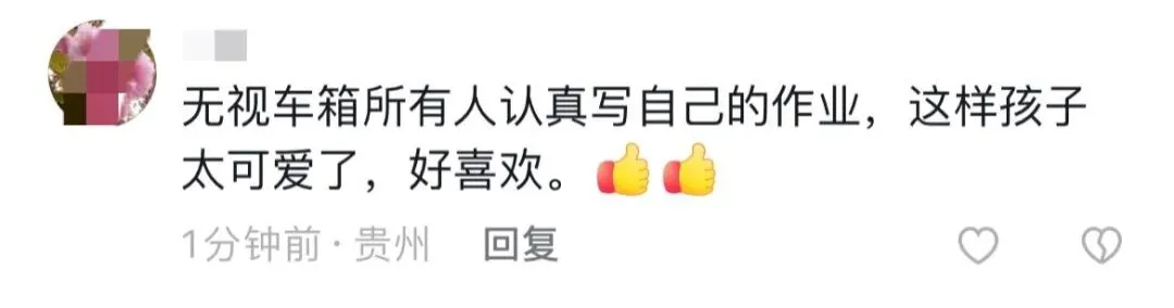 还有网友评论:“真羡慕小孩们的无忧无虑,无视周边的乘客,主打一个松弛感。”还有人写道:“这才是童年该有的样子,我们小时候也是趴在路边的石头上写作业。”