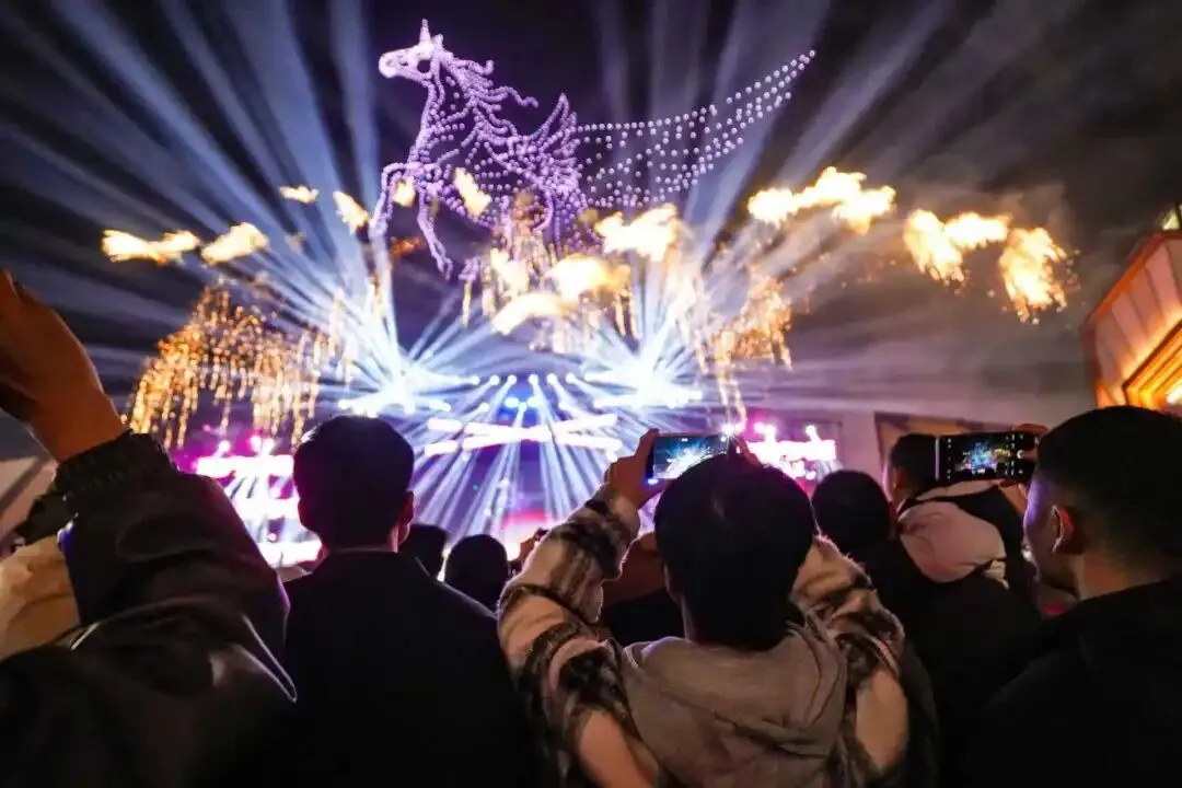 随着零点钟声的敲响,赣州方特东方欲晓园区内,两千架无人机组成的光影矩阵与璀璨烟花同步绽放,将跨年夜的氛围推向顶峰,现场万余名游客齐声倒数,共同迈入充满希望的2026年!自2025年12月20日起,赣州方特“花火音乐节”跨年主题活动正式启幕,精彩将持续至2026年1月3日,以“花火+音乐”双重体验,为游客打造了一场兼具仪式感与欢乐感的岁末盛宴。