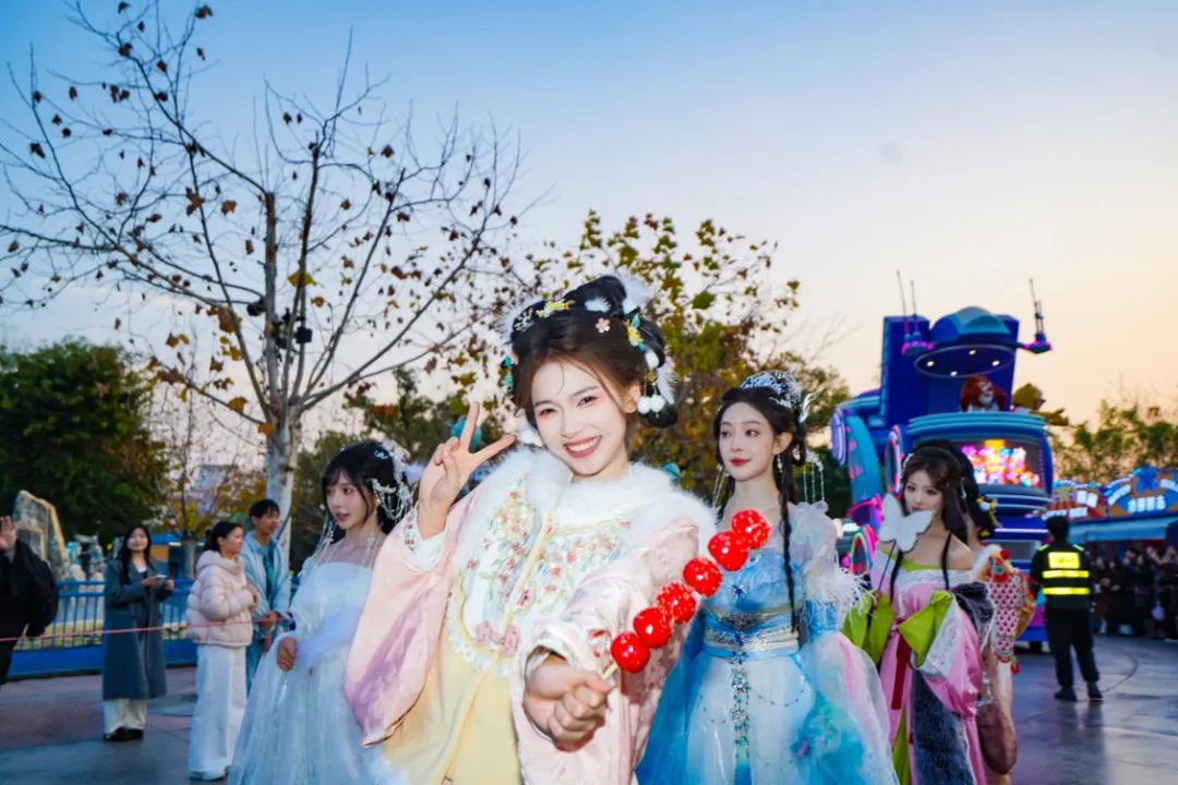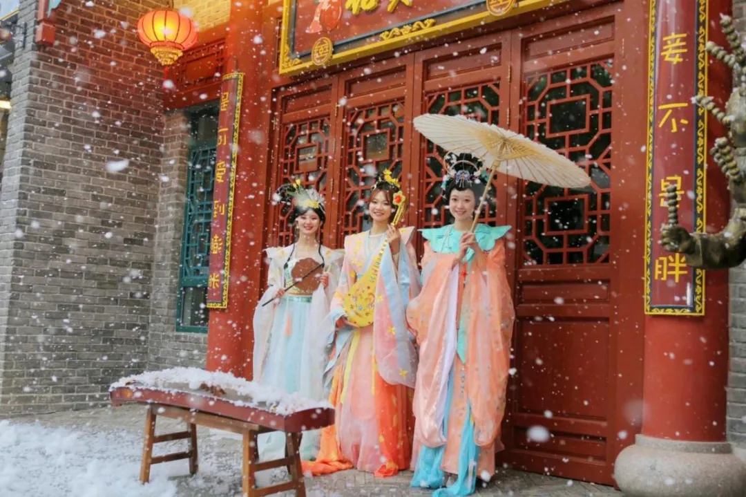 12月31日跨年夜,园区夜场延时营业至次日凌晨0:30,不少游客约上亲友前来赴约。全新升级的“飘雪小镇”还原北国冬日盛景,漫天飞雪与复古建筑相映成趣,吸引了众人驻足拍照打卡。不仅如此,超百名高颜值NPC穿梭园区,银票互动玩法趣味十足,游客通过互动即可解锁限定礼品!