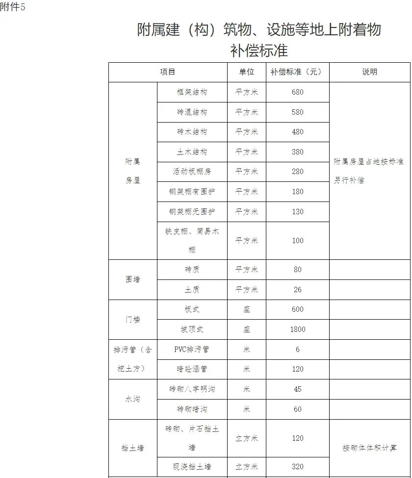 (二)征收非住宅主房、附属房屋、附属设施等一律实行货币补偿,不予安置。按照《附属建(构)筑物、设施等地上附着物补偿标准》(详见附件5)给予补偿。