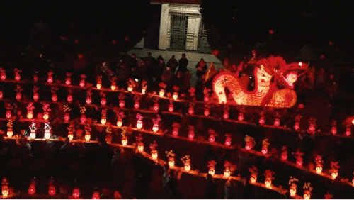 夜晚灯火游龙 烛光与花火交映