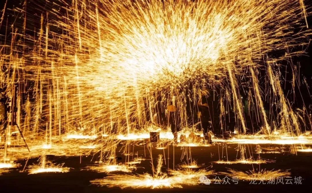 第四幕《涅槃·我铸龙光》 - 高潮压轴:结合国家级非物质文化遗产“打铁花”,夜空之下,火星如雨,烈焰成诗,寓意新生与希望,带来无与伦比的视觉震撼。