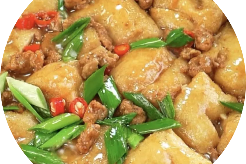 豆泡烧肉(130克) 黄瓜炒蛋(120克)