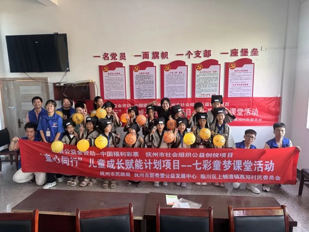 2025年抚州市新希望公益发展中心申报的公益创投“童心同行”儿童成长赋能计划项目,中心携手志愿者共同服务西邓村及周边4个村/社区的留守及困境儿童。项目通过链接社工师、心理咨询师、高校志愿者组成专业团队,在临川区上顿渡镇西邓村及周边村/社区留守及困境儿童开展周末伴学计划、七彩童梦课堂、心灵护航行动和童行乐聚成长营四项服务,满足儿童在陪伴教育、兴趣爱好培育、心理情感发展和成长赋能等方面的需求,达到提升儿童学习成绩、养成良好习惯、激发兴趣潜能、推动多元实践、提高自信心、提升适应力、促进全面发展的目标,并持续跟踪帮扶,汇聚政府、企业与社区资源,构建长效与赋能关爱机制。