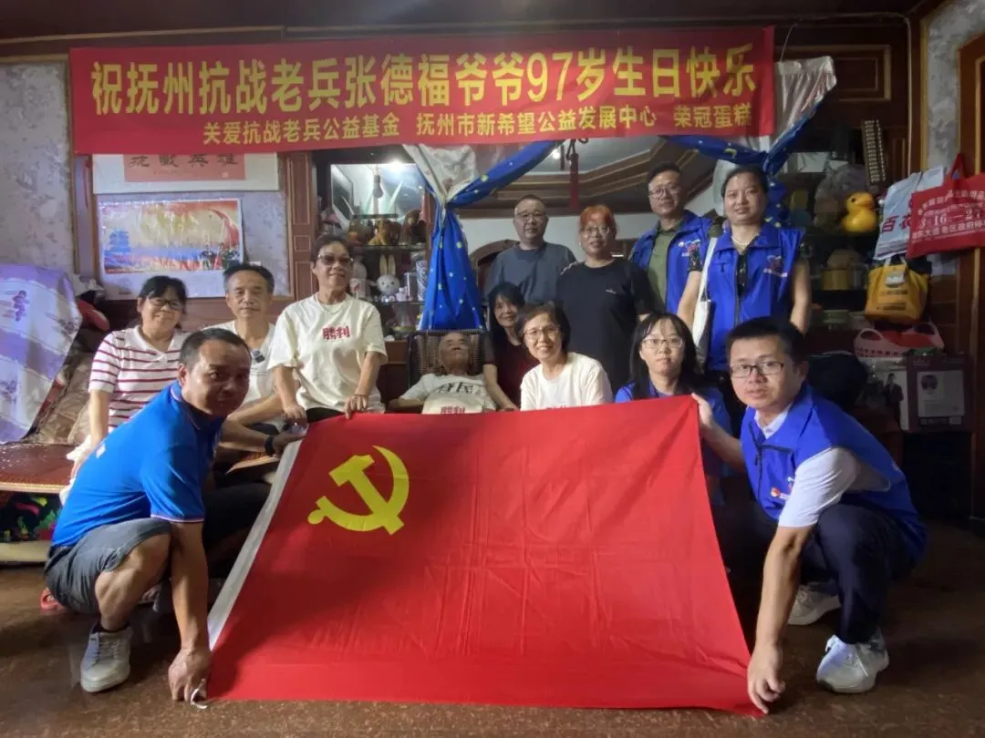 该项公益活动致力于发现并帮助散落于民间的抗战老兵的工作,对抗战老兵给予物质的和精神的关爱,也是抚州市新希望公益发展中心的传统公益项目,联合关爱抗战老兵公益基金会、深圳市龙越慈善基金会,南昌守望公益服务中心关爱抗战老兵江西团队定期走访慰问、节日慰问、重大纪念日活动、募集关爱资金、向困难老兵发放基金会助养金、发放应季慰问物资、庆祝生日、老兵去世吊唁等。从2014年启动关爱抗战老兵公益行动至今,共关爱到23位抗战老兵。共向9位困境老兵发放基金会助养金151600元。此外先后不定期赠送轮椅、电风扇、被子毯子、羽绒服、鞋帽、抗战挂历等生活用品和勋章、举办生日庆典、结婚纪念日等精神慰藉,并于每年的三大时节上户慰问老兵爷爷,陪伴并倾听他们抗战的故事,至2024年12月抚州民间公益组织关爱到的抗战老兵已全部归队。