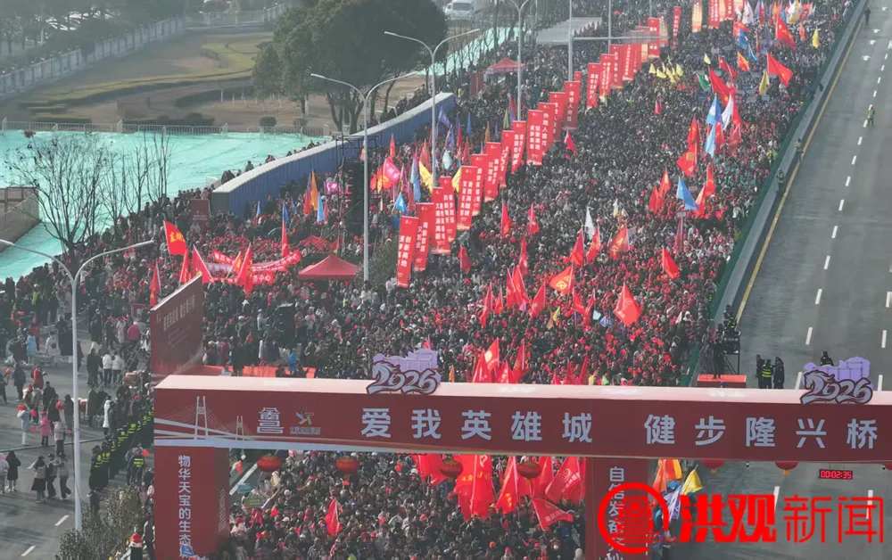 2026年1月3日,由南昌市人民政府、赣江新区管委会联合主办的“爱我英雄城 健步隆兴桥”活动在冬日暖阳中活力启程。本次活动在隆兴大桥举行,活动以体育健步为载体,融合城市文化展示,生动诠释南昌“英雄之城”的蓬勃生机与时代风貌。作为南昌城市文创的代表品牌,“南昌礼物”携一系列精心设计的文创产品亮相活动现场,以创意与匠心陪伴市民共同迈向新的一年,传递南昌故事,礼赞城市精神。
