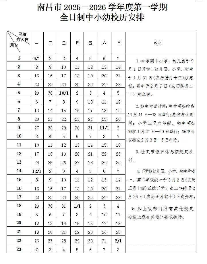 2025-2026学年中小幼校历