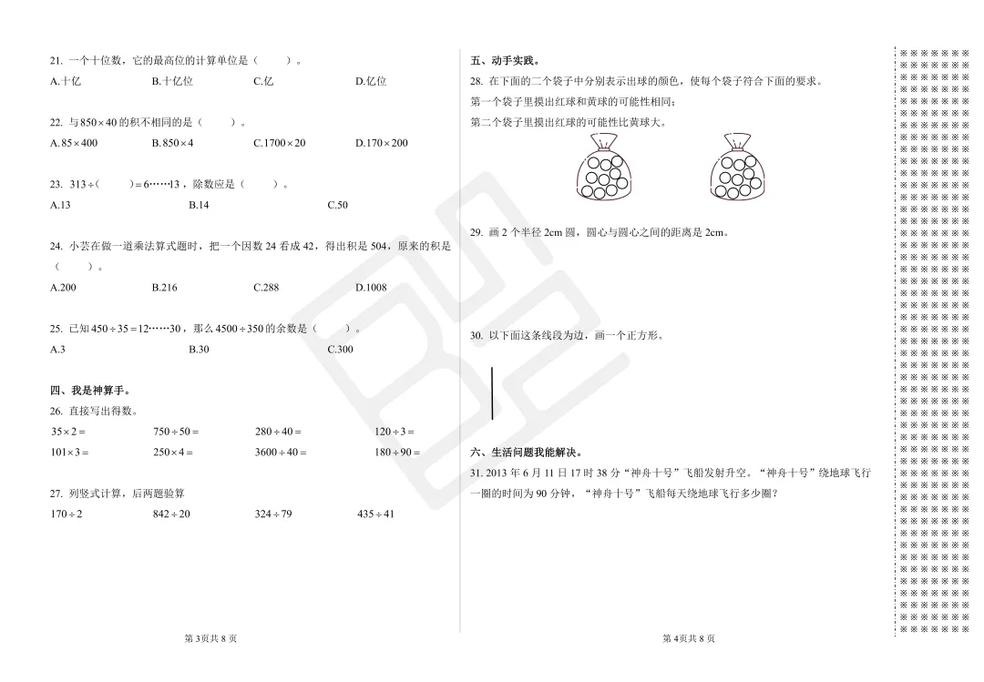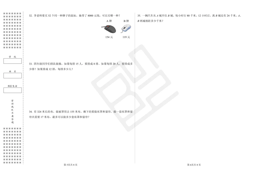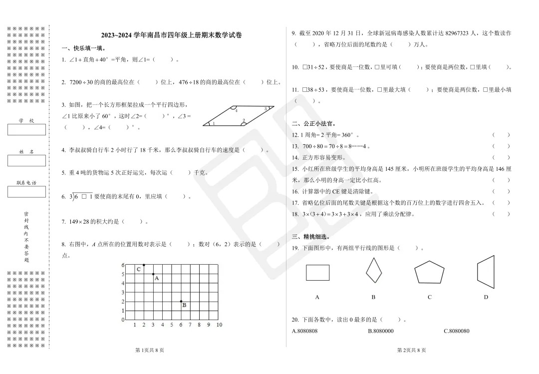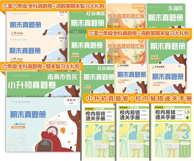 这次的期末真题卷和校内易错题,包括从三年级至六年级,都是来自南昌各区历年的真题。