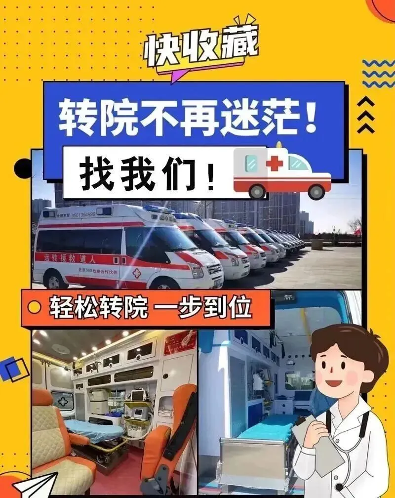 长途病人护送转运服务 —— 快稳正规,收费透明,家属口碑之选专注长途病人护送转运,我们以极速响应、路线精通、收费透明为核心,为有需求的家庭提供安心可靠的非急救转运服务,更收获了无数家属的真实认可。转运速度,我们从不让家属久等。承诺最快 15 分钟出车,配备的司机均拥有丰富驾龄,对全国及市区路线了如指掌。无论是跨城转院的长途需求,还是市区内的病人接送,都能规划最优路线,平稳送达,最大程度减轻病人旅途颠簸与折腾。北京张先生(跨城转院家属):“父亲重病需要从北京转去上海治疗,当时特别着急,打电话 12 分钟就有车到楼下了!司机师傅路况熟,全程没怎么颠簸,老人一路上没遭罪,太感谢了!”24 小时全天候待命,随时响应您的来电预约。我们的医护辅助团队全程贴心照料,从上下车搀扶到途中基础护理,细节处尽显专业,让家属全程省心。上海李女士(出院接送家属):“妈妈术后出院,行动不便,半夜联系的他们,客服态度特别好,很快就安排好了车。医护人员全程帮忙抬担架、监测状态,比我们自己折腾省心太多,特别靠谱!”针对家属最关心的费用问题,我们坚持按公里明码标价,无任何隐形消费,收费标准清晰公示,杜绝虚头巴脑的额外开支。举个例子,从北京到上海千余公里的长途转运,费用仅需几千元,相较自驾出行更省钱、更省心。广州王先生(长途转运家属):“之前担心转运费有猫腻,没想到他们报价特别明确,每一项费用都列得清清楚楚,最后结算和报价完全一致,没有多收一分钱,这种透明的商家太让人放心了!”出院转院、长途护送,只要您有需求,提前致电即可。我们会第一时间为您精准报价,还可享受专属优惠。感谢每一份信任与选择,无数家属的口碑见证,是我们前行的动力!您的安心,就是我们的追求!