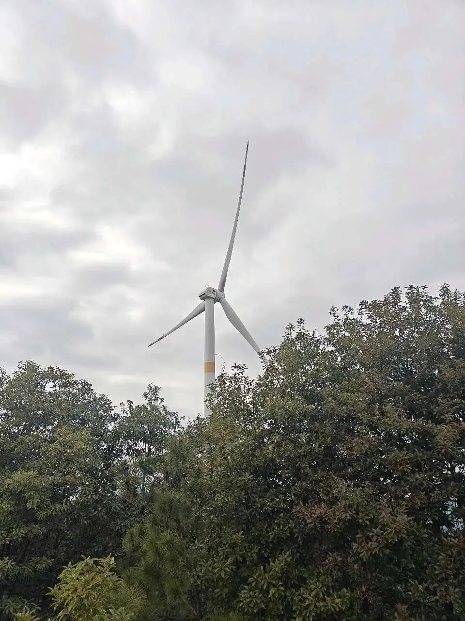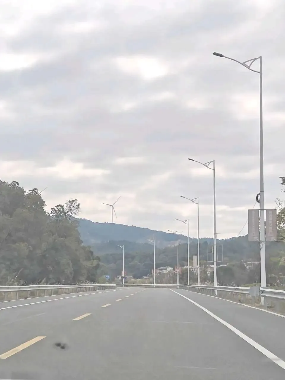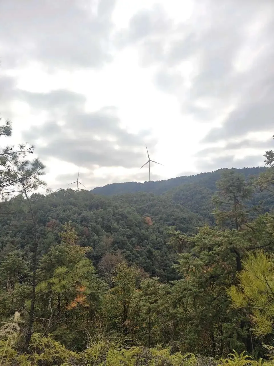 山里的惊喜真的藏在各个角落:不知名的树开着星星点点的小花,风一吹就簌簌飘落;山脊上立着一排排巨大的风力发电机,慢悠悠地转着叶片。