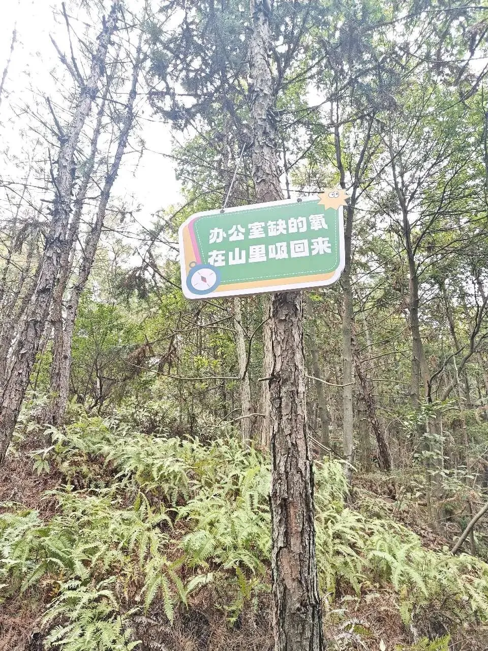 进山的路不算难走,最戳我的是沿路挂着的小卡片。上面写着“加油,山顶就在前方”“你已经很棒啦”之类的暖心话,本来爬得有点累,看到这些字,瞬间又充满了坚持下去的动力。