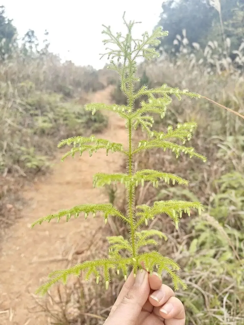走着走着,顾先生突然蹲下身,指着路边的一丛草两眼放光:“这是伸筋草!拔回家种肯定好看!”于是,在荒无人烟的山路上,出现了两个奇葩——我和顾先生并排撅着屁股,用钥匙一点点抠着土里的草根,活像两个偷菜的“山大王”。