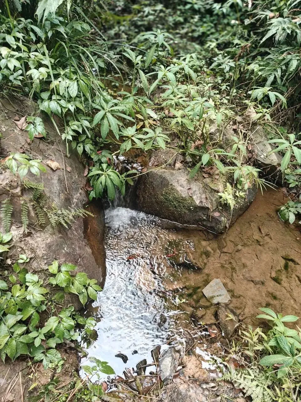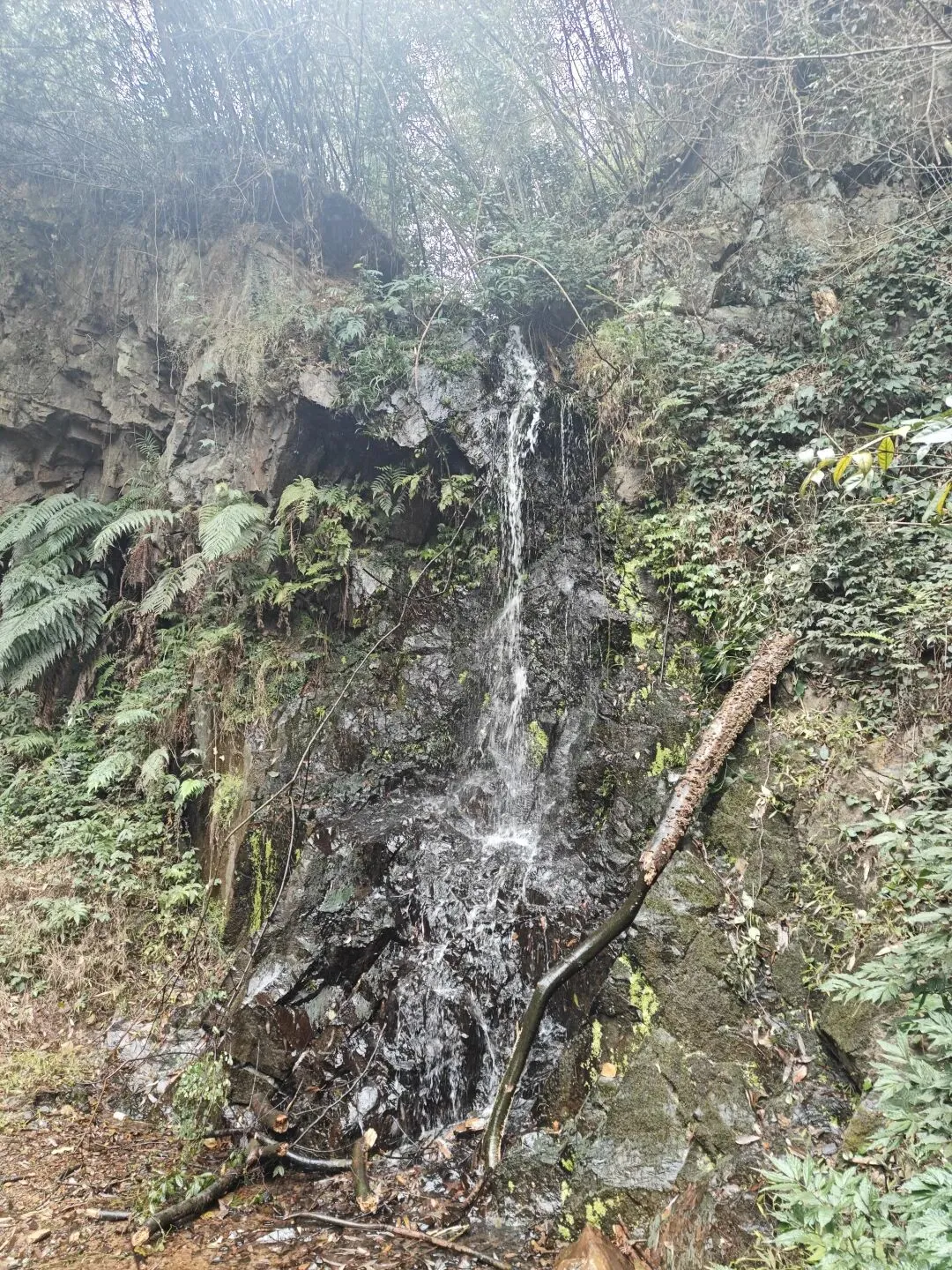 折回花溪谷的时候,我心里其实有点小期待——结果看到的就是一个迷你小瀑布,水流细得像根线。不过水是真的冰,伸手摸了一下,瞬间冻得缩回手。说实话,除了水凉,没啥特别好看的。