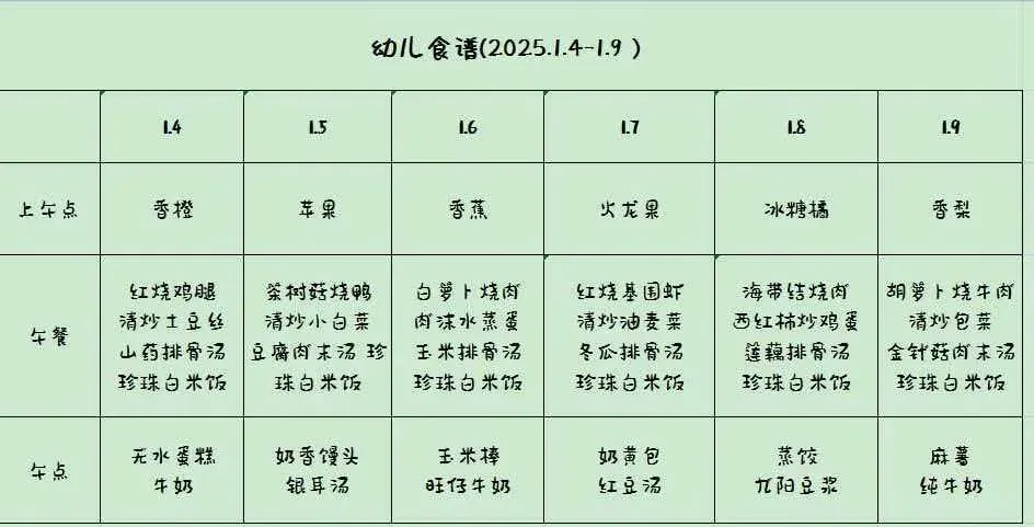 第十九周食谱(1.4-1.9)
