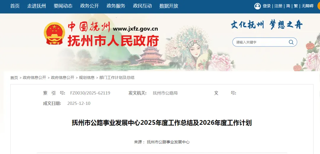 近日,抚州市公路事业发展中心发布了《2025年度工作总结及2026年度工作计划》,其中提到多条道路建设计划。