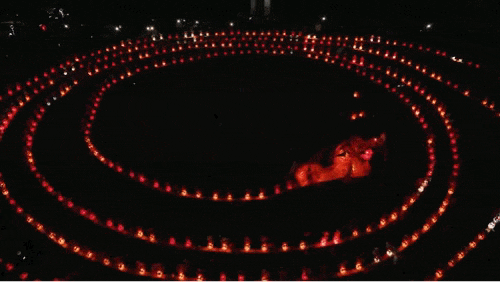 夜晚灯火游龙 烛光与花火交映