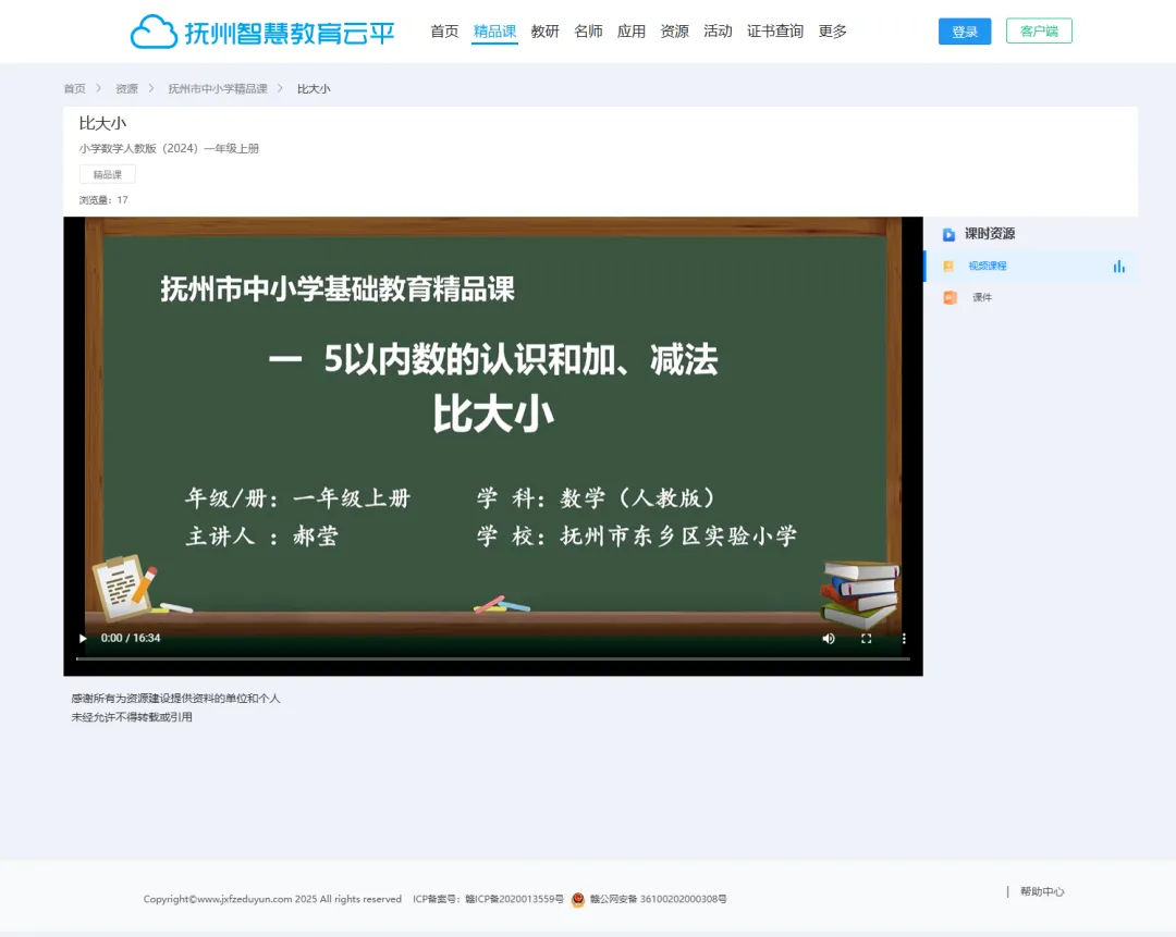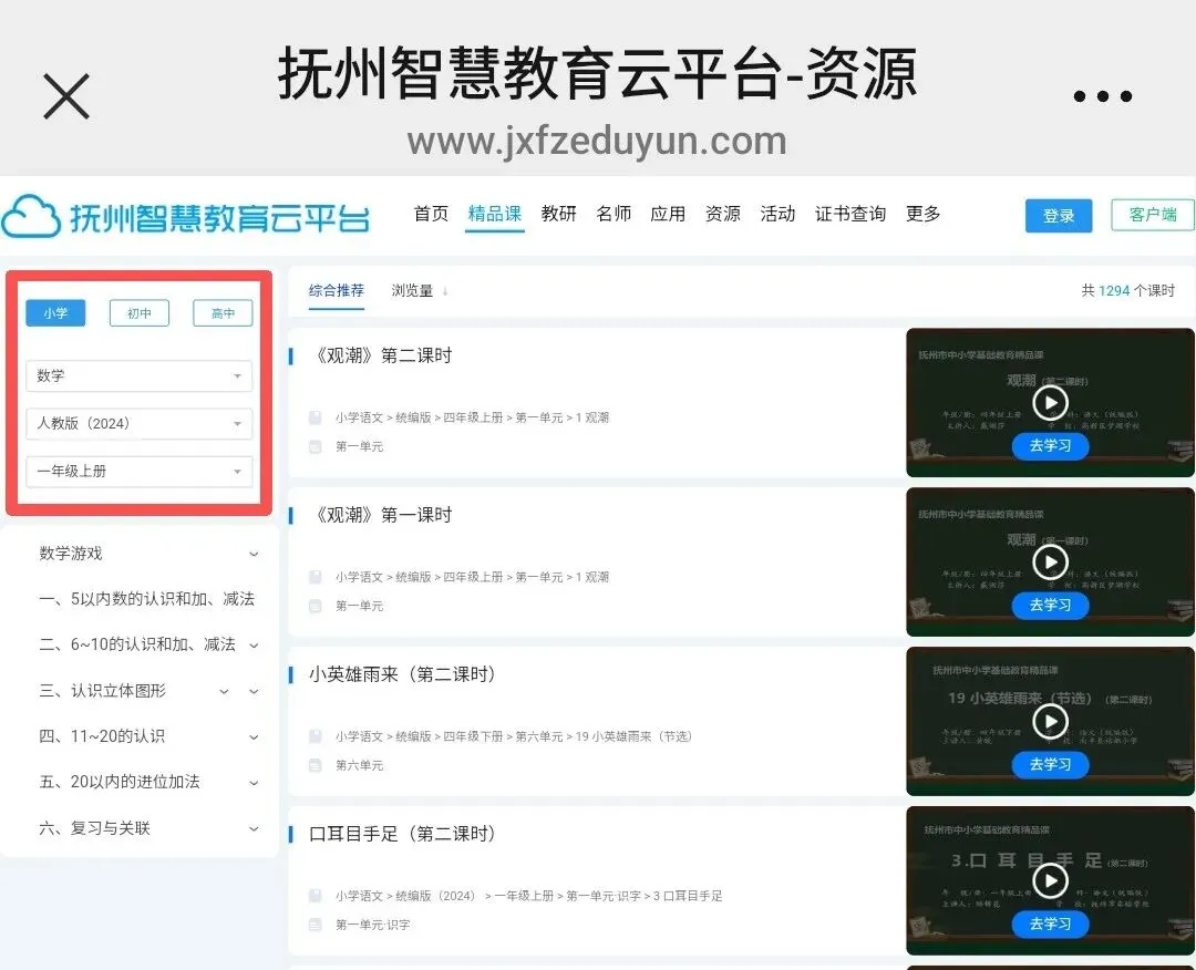 第二步:进入首页,点击任一选定区域,进入“抚州市中小学精品课”页面。