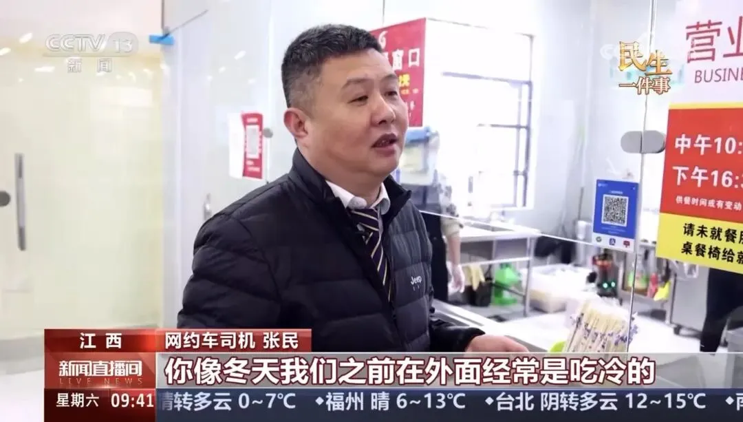 网约车司机张民告诉记者:“非常实惠,看过去也比较有食欲。你像冬天我们之前在外面经常是吃冷的,对身体相当不好,自从在这边随时能吃到一口热饭,包括还有免费的热汤,相当好。”