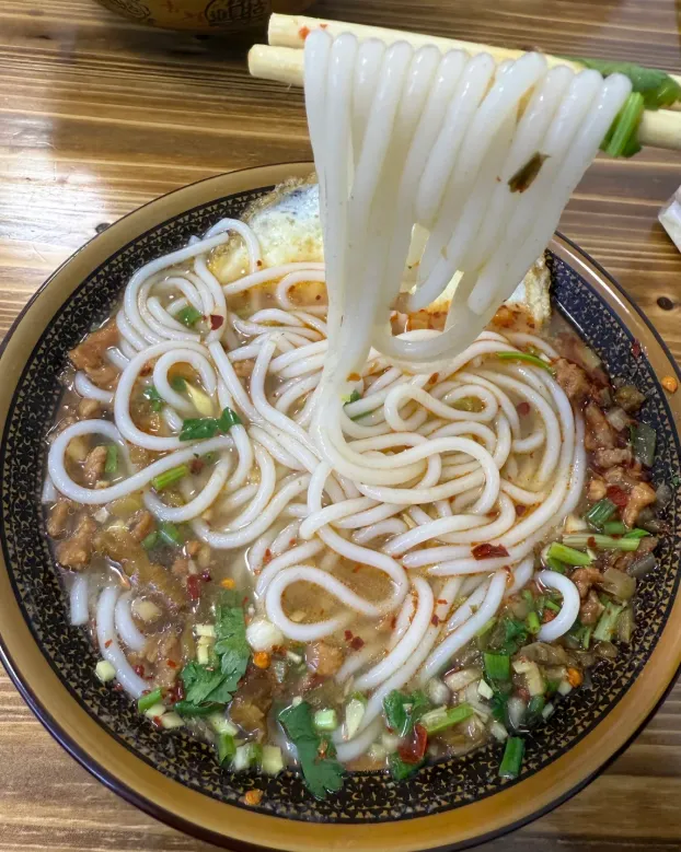 江西菜的辣,是那种不讲道理的直接。早起一碗铅山烫粉,汤一喝,人就醒了。那粉条久煮不烂,吸饱了肉汤的鲜味,再加一勺红彤彤的辣椒油,额头微微冒汗,通体舒畅。
