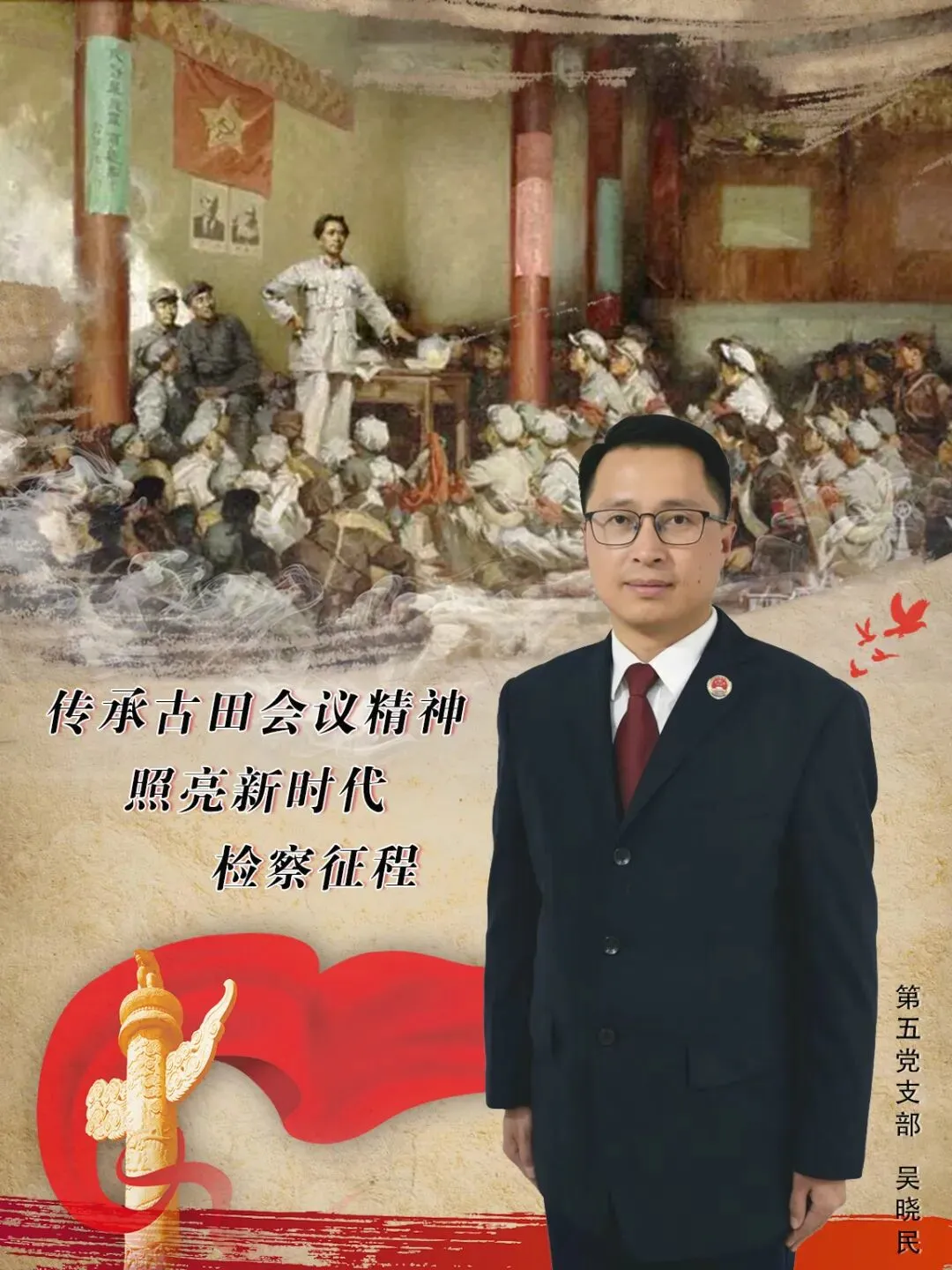 吴晓民同志以《传承古田会议精神 照亮新时代检察征程》为题,带领大家回到1929年的闽西山区。他从古田会议召开的历史背景切入,深入剖析了会议如何确立“思想建党、政治建军”的根本原则,彻底纠正党内非无产阶级思想。通过详实的历史文献与生动事例,吴晓民同志生动展现了由毛泽东同志主持起草并经大会通过《古田会议决议》的深远考量,讲到这一决议为党和军队注入了“灵魂与生命”。他谈到,古田会议精神所彰显的“坚持真理、修正错误”的勇气,对新时代检察工作具有重要启示——唯有筑牢政治忠诚、坚守法治信仰,才能确保司法为民的正确方向。