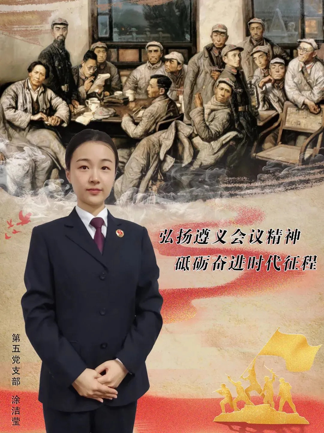 涂洁莹同志以《弘扬遵义会议精神 砥砺奋进时代征程》为题,将视线转向1935年的贵州遵义。她围绕遵义会议如何结束“左”倾教条主义错误、事实上确立毛泽东同志在党中央和红军的领导地位,层层展开叙述。通过讲述周恩来、张闻天等关键人物在会议中的重要作用,涂洁莹同志深刻阐释了遵义会议“实事求是、独立自主”的核心精神。她讲到,这场会议不仅是中国共产党从幼稚走向成熟的标志,更启示当代检察干警:在复杂司法实践中,必须坚持调查研究、勇于担当作为,以科学决策破解办案难题。