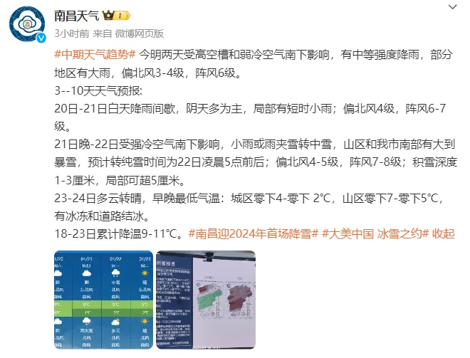 其中赣北、赣中和赣南北部部分地区有中到大雪