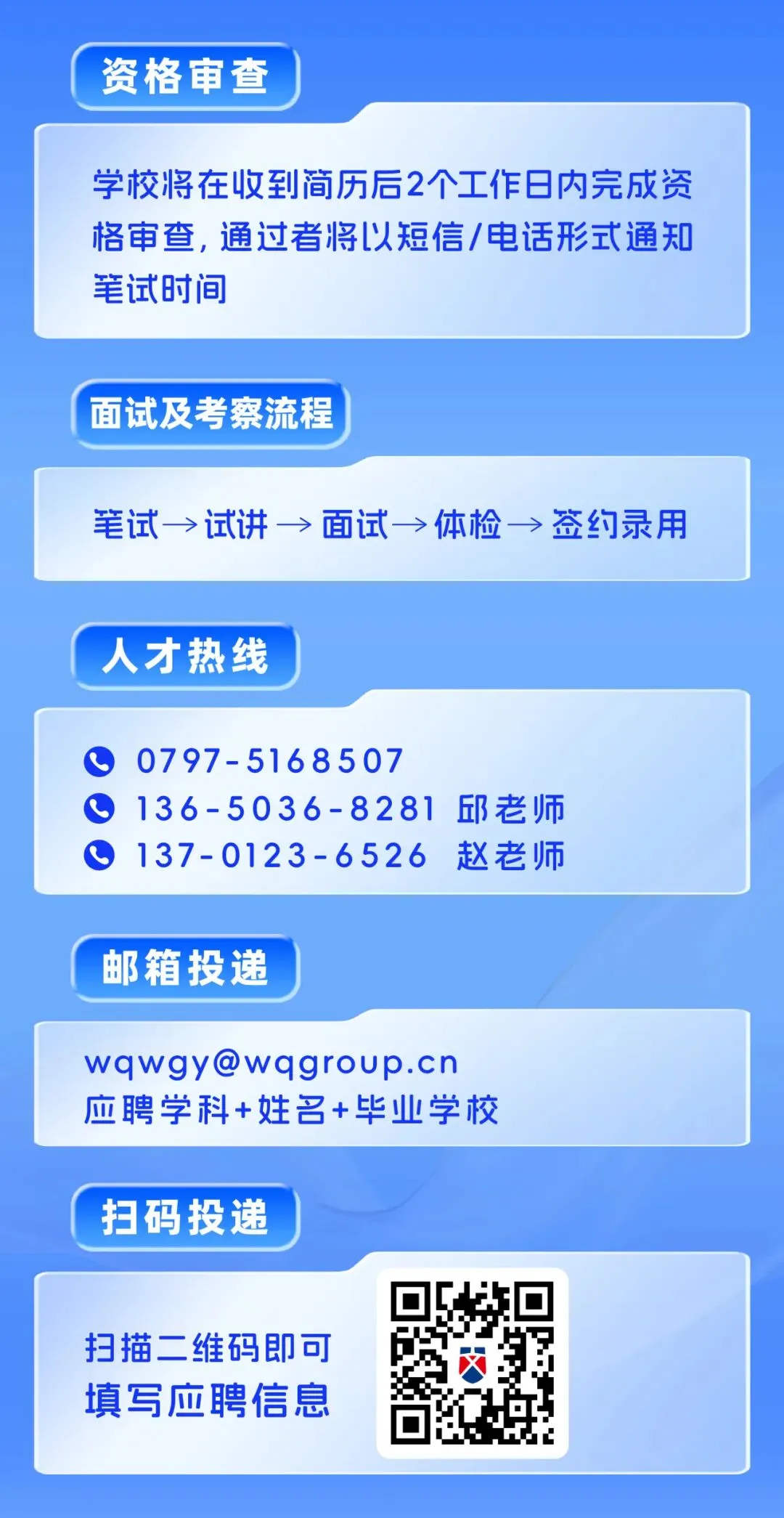 年薪15万-25万(博士/竞赛教练另议),子女入学全配套。教师享受六险二金(养老、医疗、补充医疗、失业、工伤、生育、住房公积金、企业年金)、带薪寒暑假、教师子女入学减免学费福利、年度体检、节日福利等完善待遇,免费营养餐、拎包入住的人才公寓、游泳馆、健身房、篮球馆、体育馆、图书馆全部免费向教职工开放使用,学校为优秀人才提供富有竞争力的薪资待遇。学校建立了完善的薪资福利体系、奖励与评价体系及教师的职级发展体系。