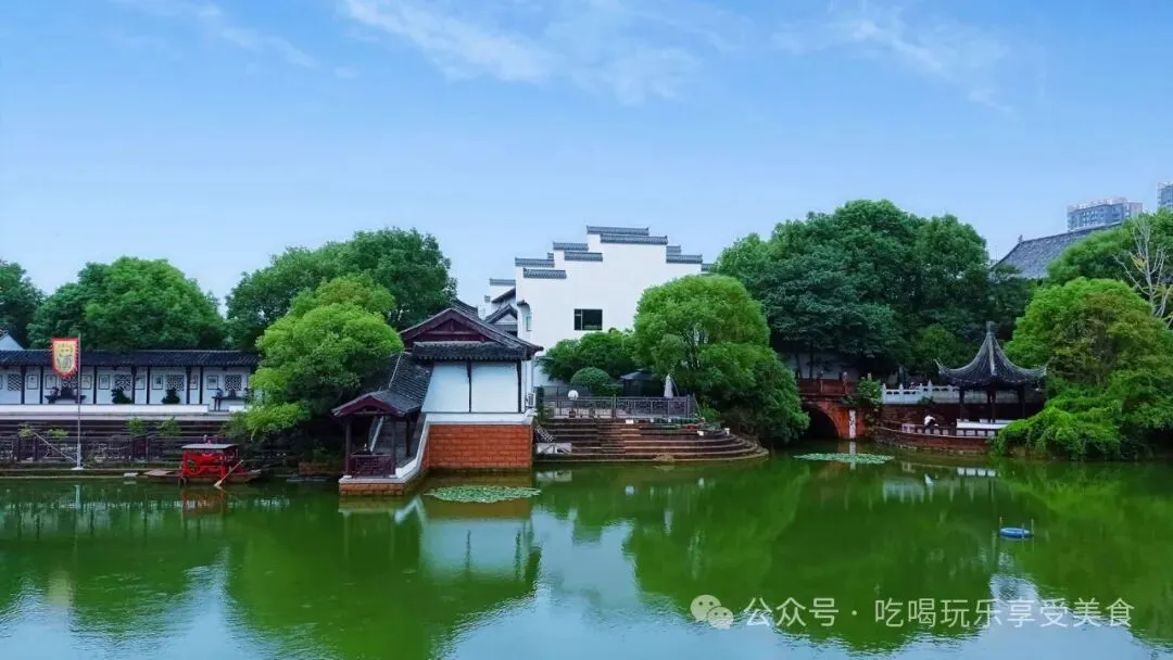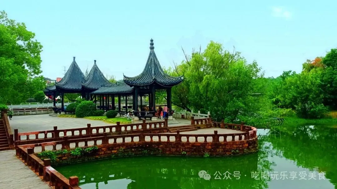 走进景区,仿佛穿越时空,能感受到浓厚的艺术氛围。园内古木参天,曲径通幽,亭台楼阁错落有致。水榭回廊环绕着清澈的池塘,荷叶田田,荷花绽放,美不胜收。