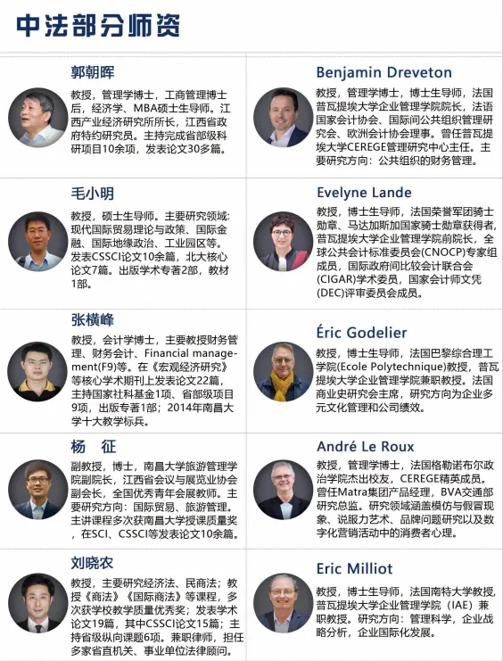 录取:中法两校将根据考生的笔试、面试成绩并参考职业履历确定录取名单。