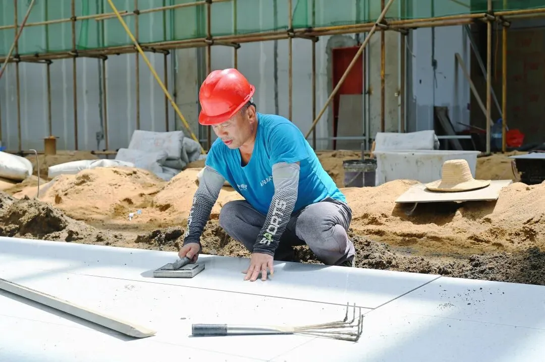 在项目施工现场,施工人员正在紧张有序地进行室内装修等收尾工作。100余名建设者分工协作,地砖铺贴、吊顶安装、电梯安装、空调设备吊装、线路敷设、正式用电管道埋设、燃气管道开挖等工序同步推进,整个现场一派繁忙景象。