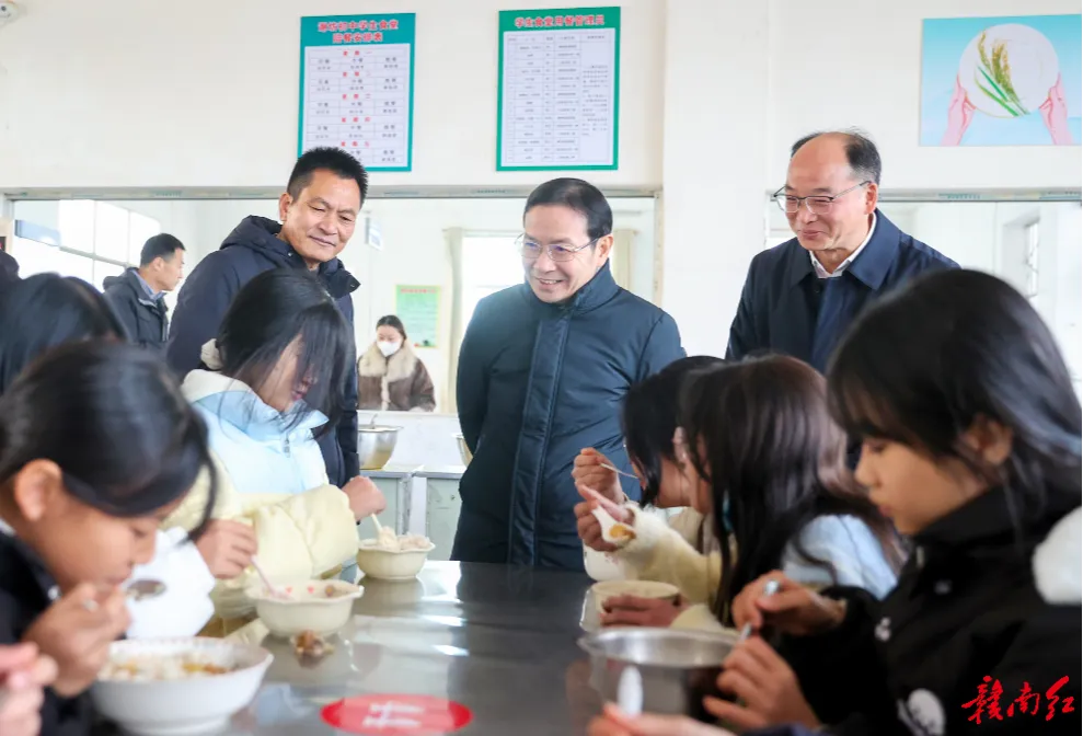 黄喜忠还以“四不两直”方式来到瑞金谢坊初级中学,深入了解“校园餐”供应管理情况,并与学生一同用餐。他强调,要严格规范配餐企业准入管理,紧盯食材采购、配送、贮存、加工等关键环节,持续提升供餐质量和服务水平,切实保障学生吃得安全、吃得营养。