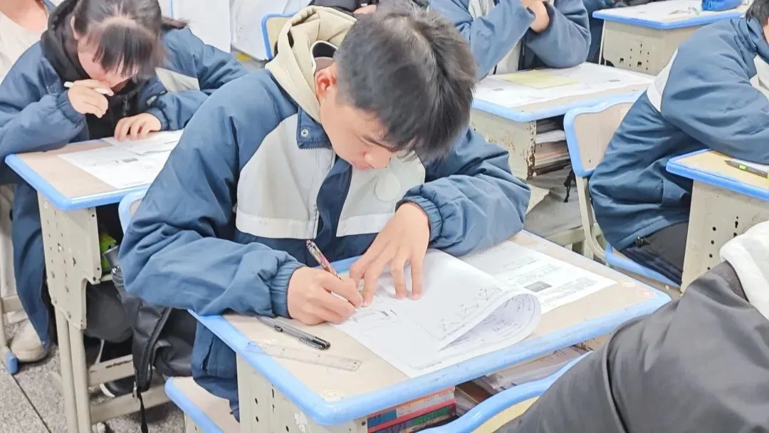同学们专注于图形与条件,通过一步步严谨的演绎,寻找证明的路径。赛场安静,思维流动。