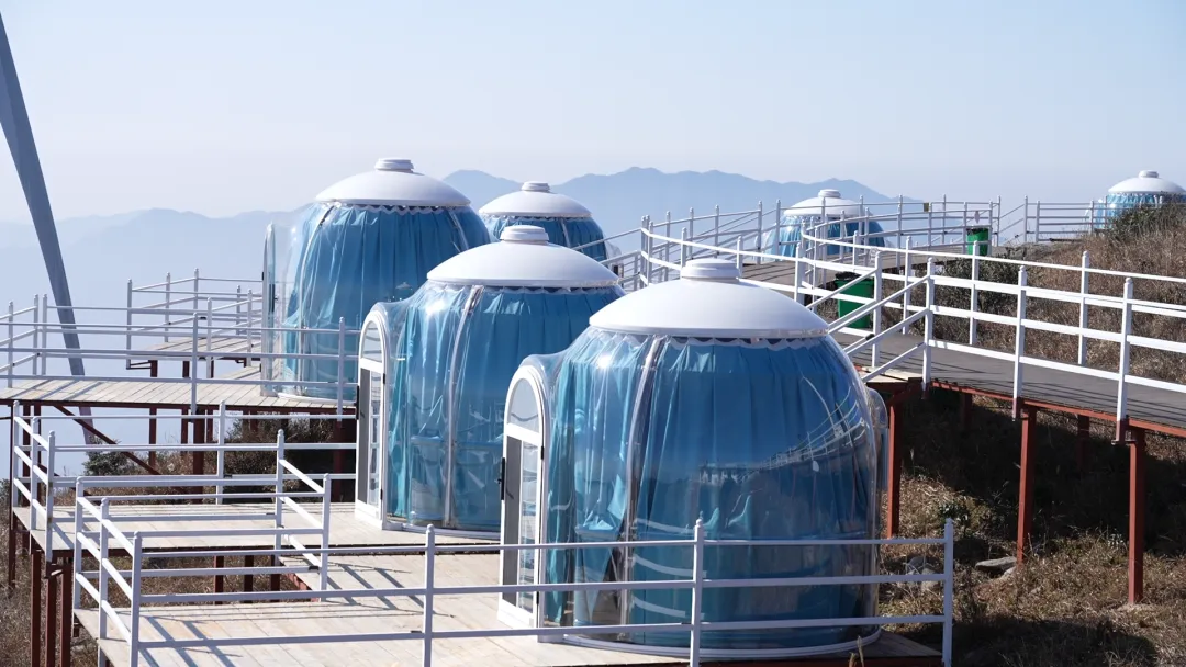 还可以感受到在海拔1200米的观星台搭建「冰屋帐篷」,夜晚透过穹顶玻璃观赏「雾凇银河」,零下3℃的低温让呼吸化作云雾,在睡袋里感受「躺在云朵里数星星」的奇幻。
