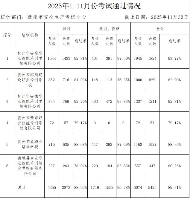 >抚州市2025年1—11月安全生产培训考试“成绩”如何?速戳→