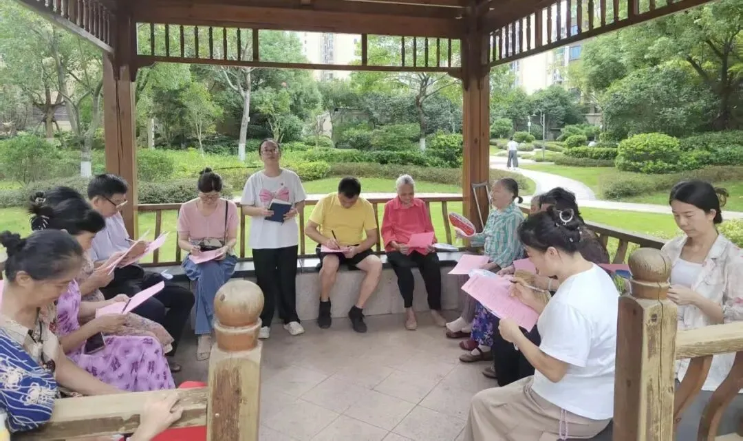▲潭东镇高校园区工作组花园里社区组织居民召开“庭院议事会”