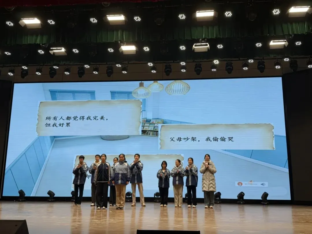 大赛紧扣自我认同、学业压力、人际边界、家庭对话、生涯探索、情绪管理等当代青少年成长的核心议题。各班创作团队深入观察生活,匠心独运,将真实的困惑与思考转化为舞台上的冲突与和解。舞台上,演员们全情投入,用真挚的表演刻画内心的波澜与成长的阵痛;舞台下,观众凝神观看,在共鸣中反思,在感动中收获,现场不时爆发出热烈的掌声与由衷的赞叹。