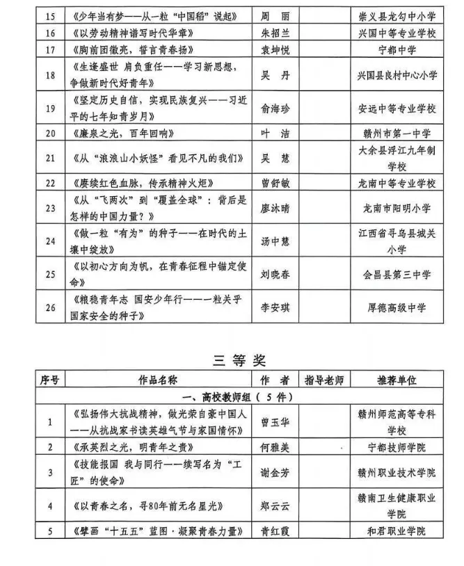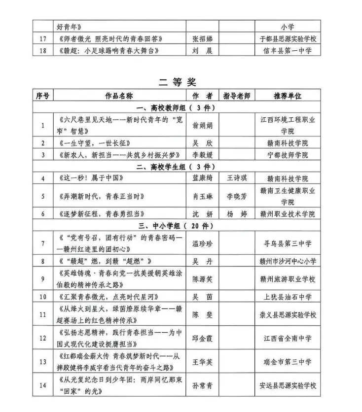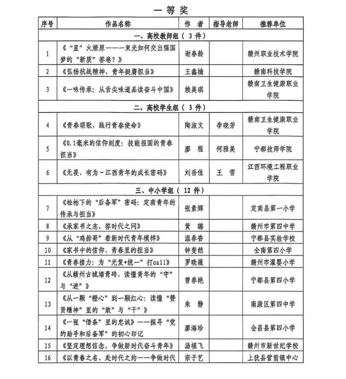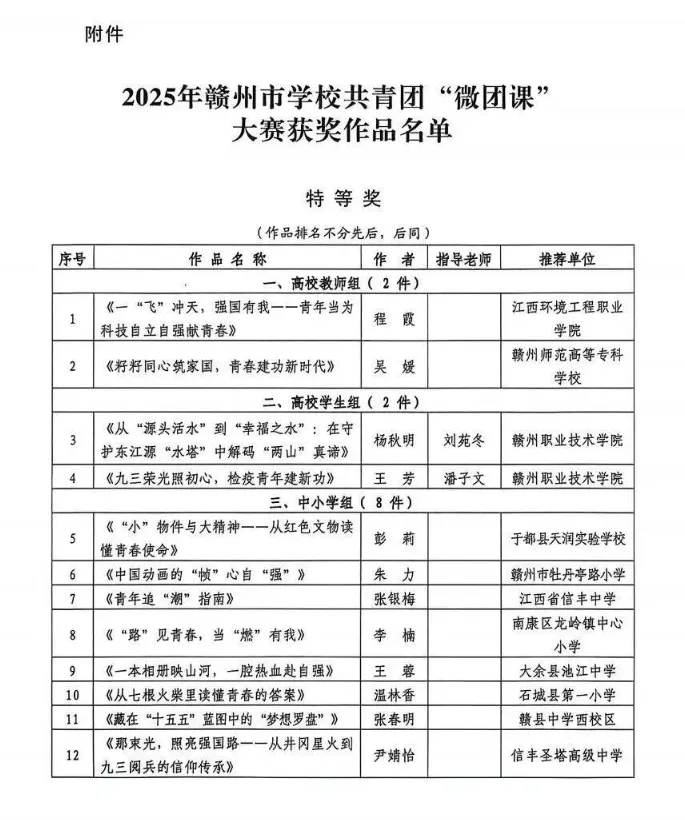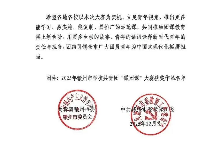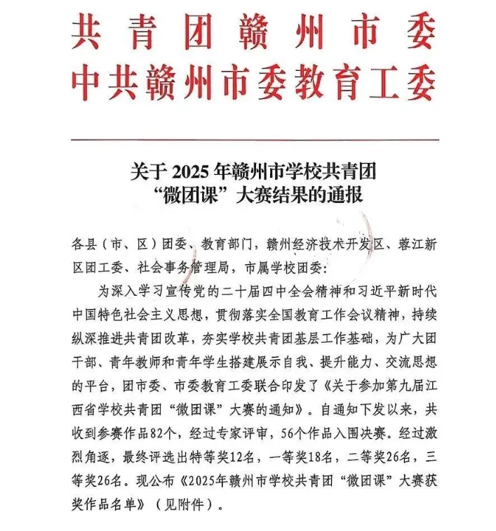 >关于2025年赣州市学校共青团“微团课”大赛结果的通报