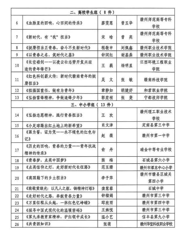 关于2025年赣州市学校共青团“微团课”大赛结果的通报