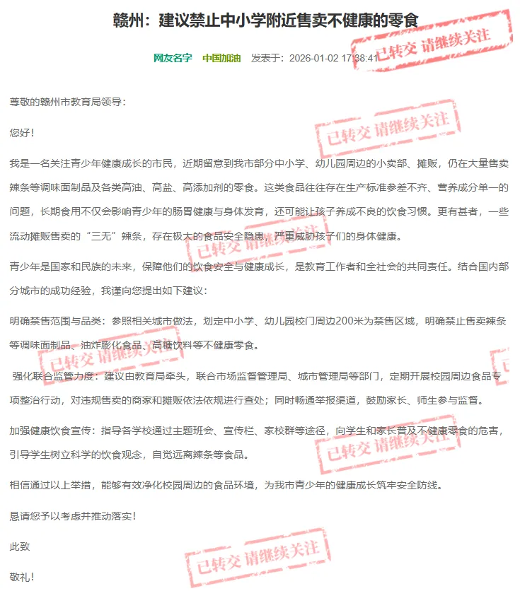 近日,有赣州网友发文求助:“赣州部分中小学、幼儿园周边的小卖部、摊贩大量售卖辣条等调味面制品及各类高油、高盐、高添加剂的零食,一些流动摊贩甚至售卖“三无”辣条,存在极大的食品安全隐患,严重威胁孩子们的身体健康。”