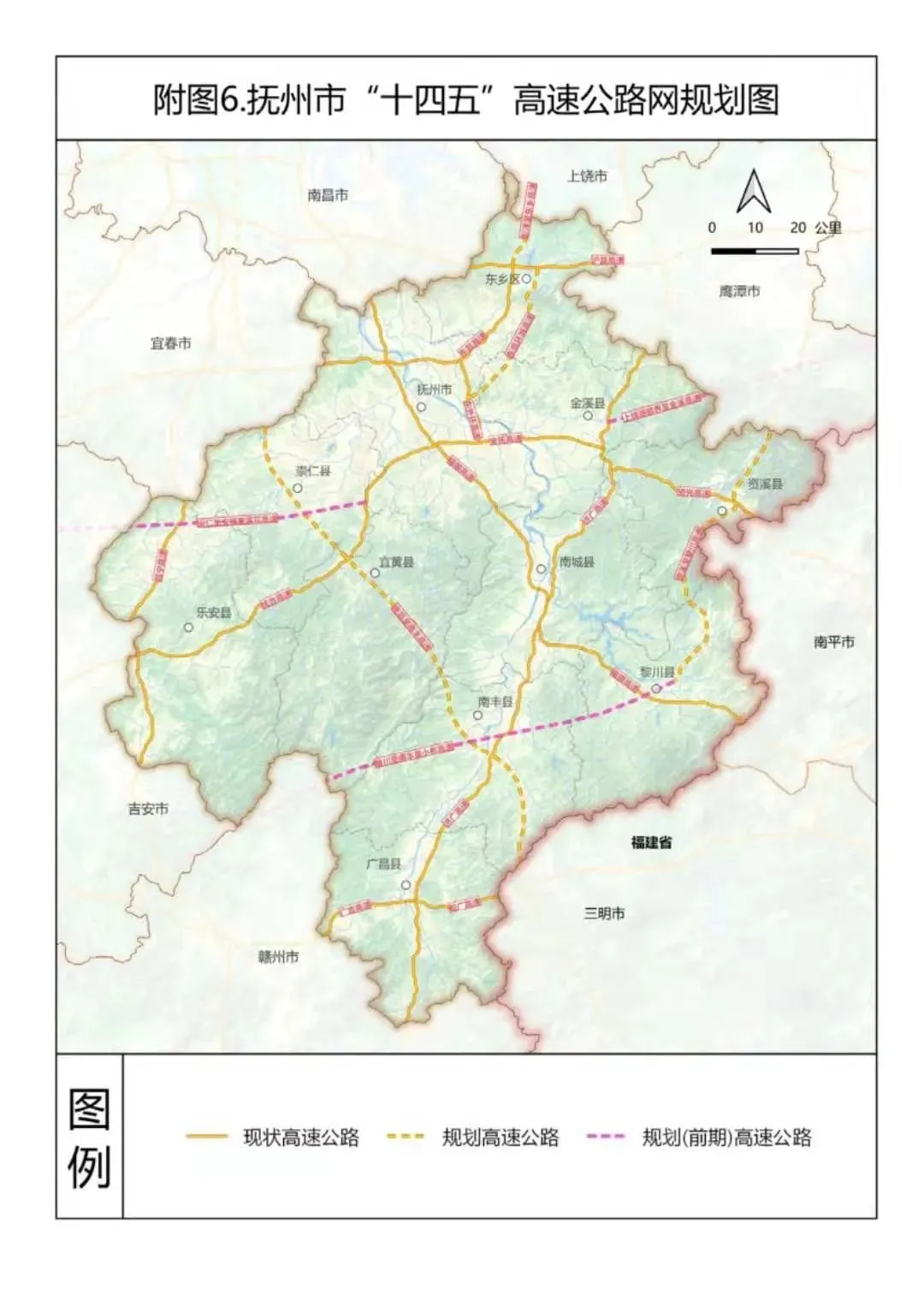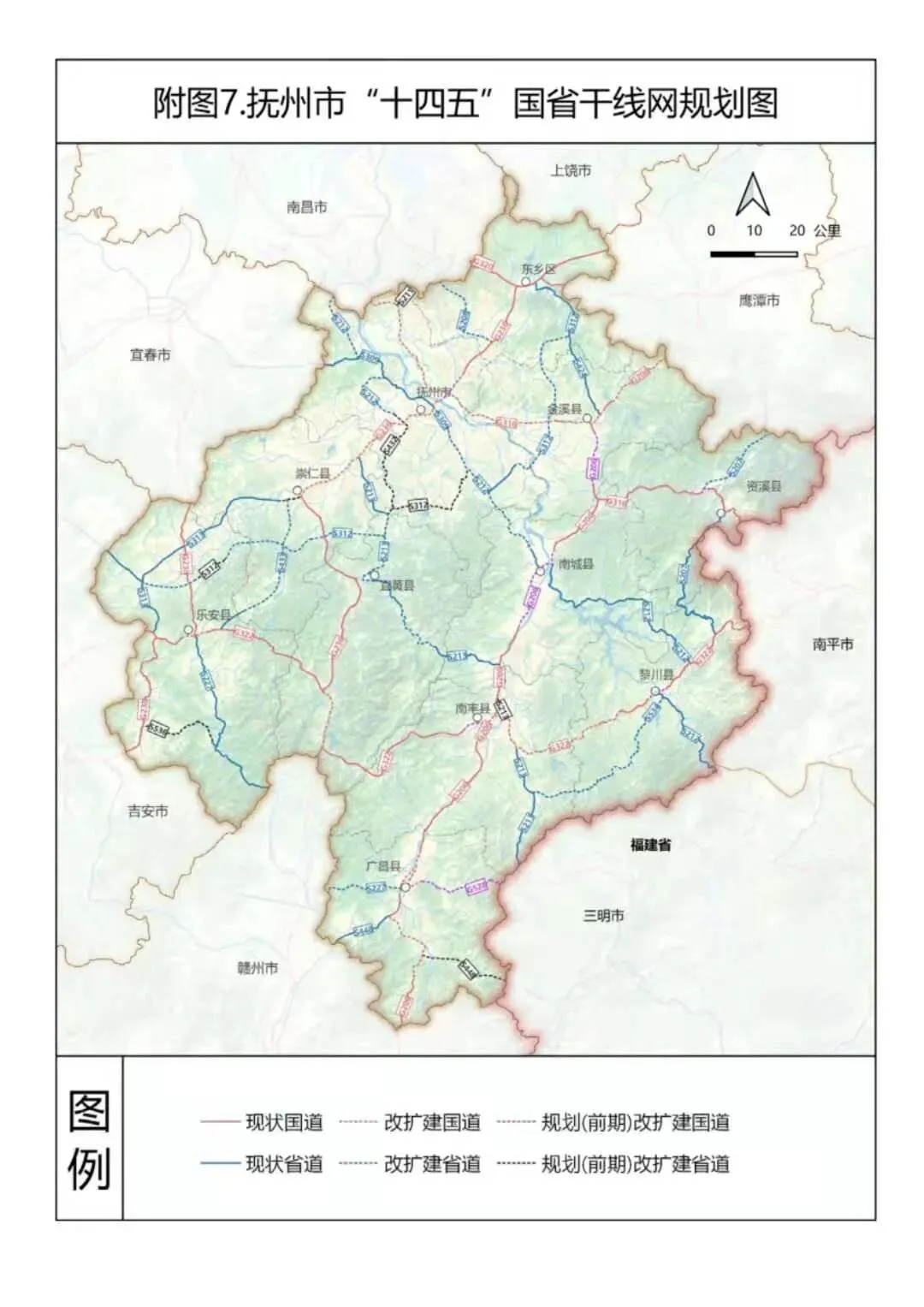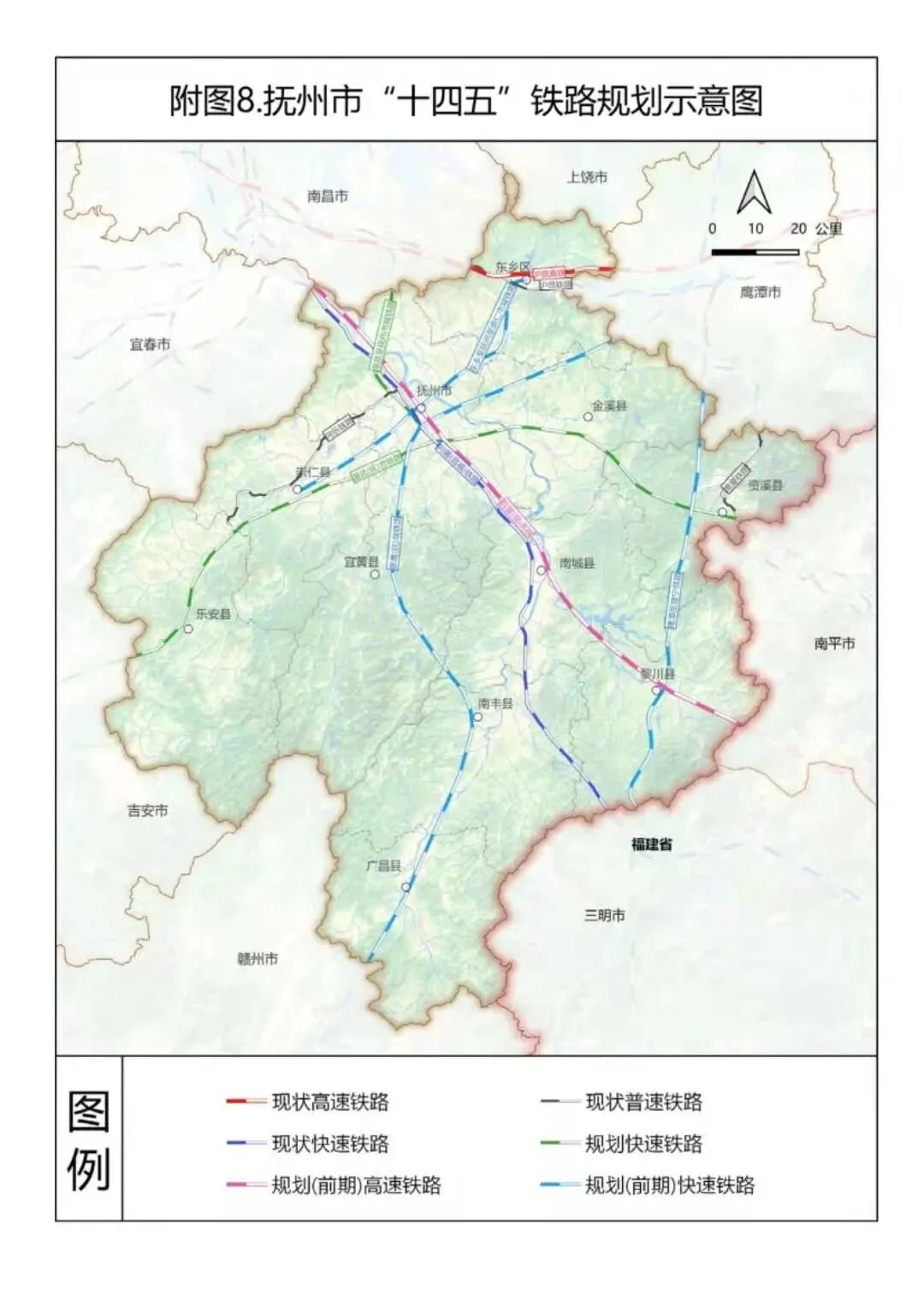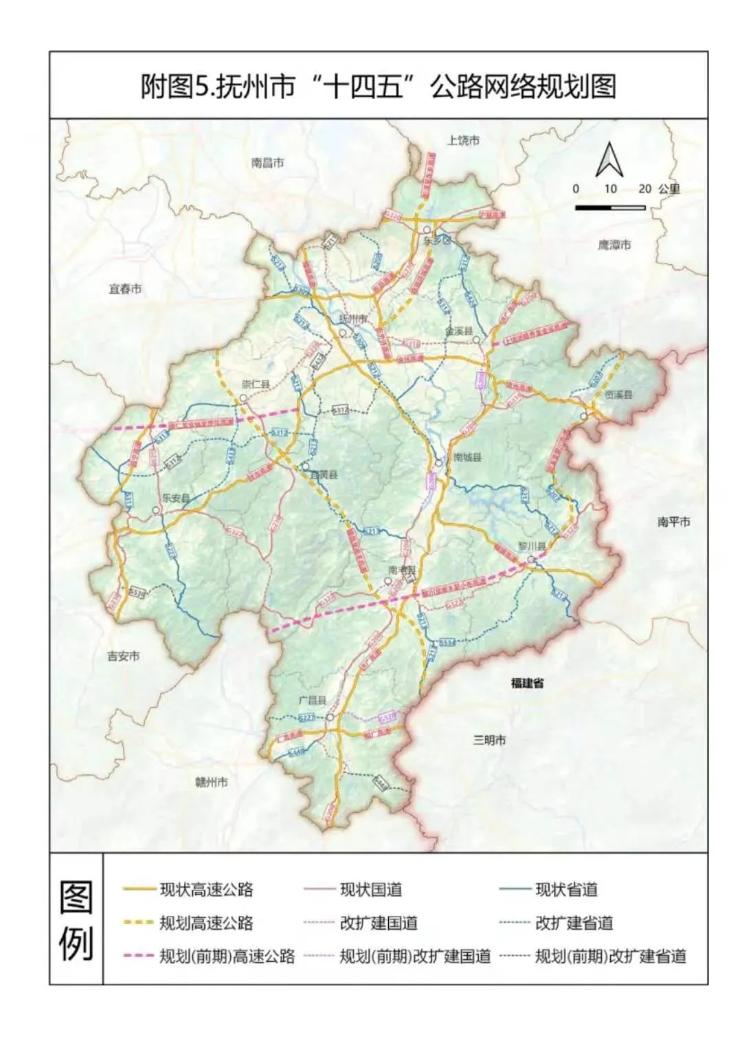 近日,抚州市人民政府网发布关于印发《抚州市“十四五”综合交通规划》(下称规划)的通知,主要涉及中心城区及重要交通枢纽的规划,提出十四五期间要新建抚州机场、温武抚吉铁路、南昌至南丰(赣闽界)高速公路昌抚大道、抚州至崇仁、金溪、南城快速路等重大项目。积极推进景鹰(抚)瑞铁路、东乡至抚州至崇仁市域铁路前期准备工作。