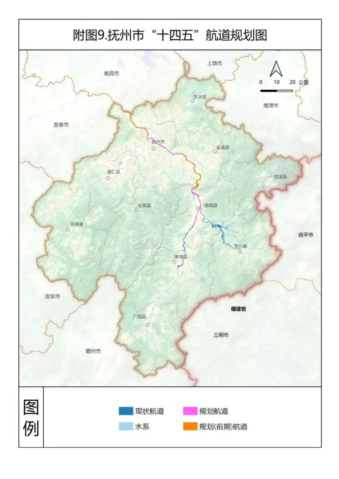 推进抚河市中心城区抚河段、南城至廖坊水库水上旅游航道建设,积极融入全省“两横一纵十支”内河运输网络。待鄱阳湖枢纽初步设计批复后,适时启动抚河航道的规划建设工作。